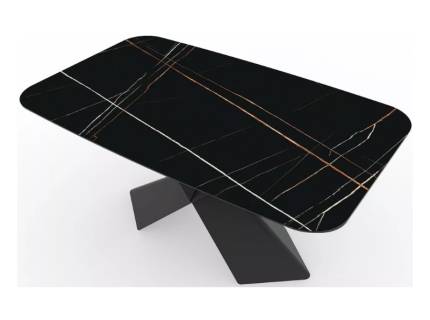 Masa extensibila GASTON CERAMIC BLACK 140 din ceramica cu efect de marmura neagra, metal negru 140-180x80xH75cm