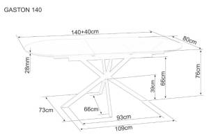 Masa extensibila GASTON CERAMIC GREY 140 din ceramica cu efect de marmura gri, metal negru 140-180x80xH75cm