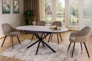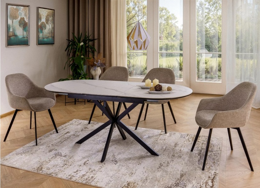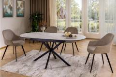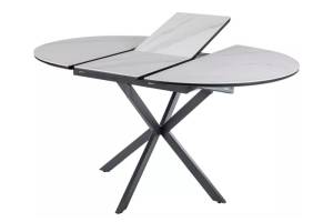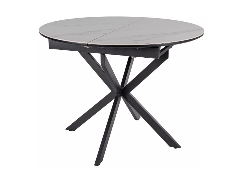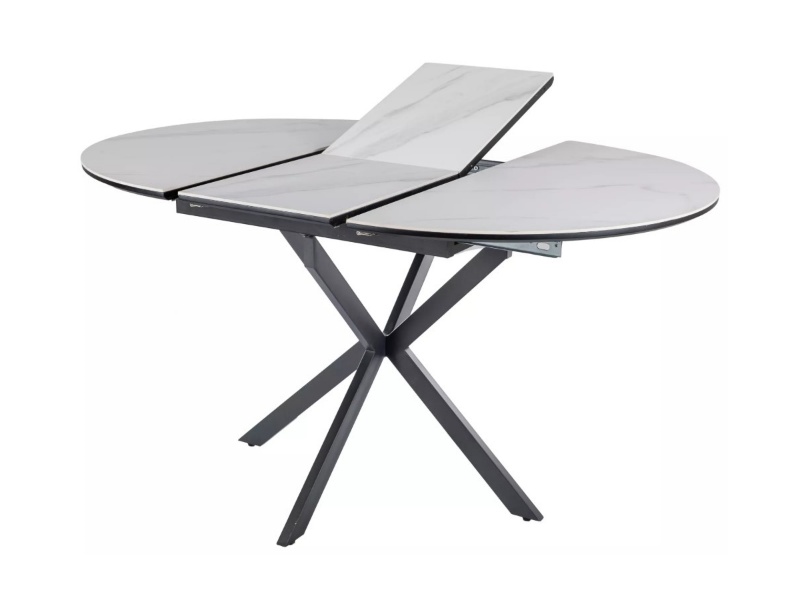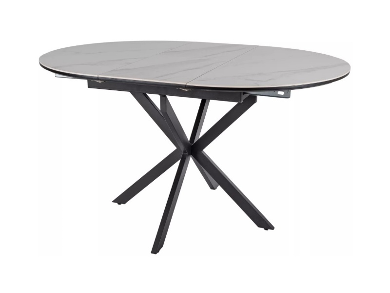 Masa extensibila GASTON CERAMIC WHITE 100 din ceramica cu efect de marmura alba, metal negru 100-135xH75cm