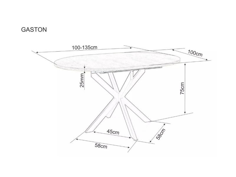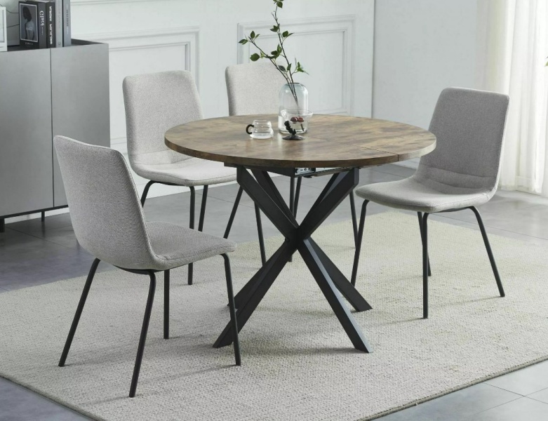 Masa extensibila GASTON VINTAGE 100 din MDF si furnir nuc vintage, metal negru 100-135xH75cm