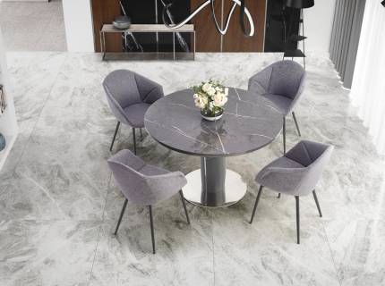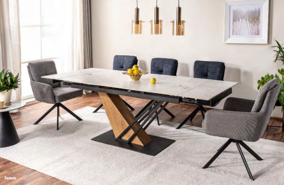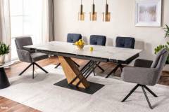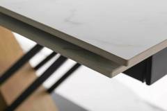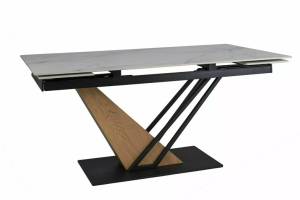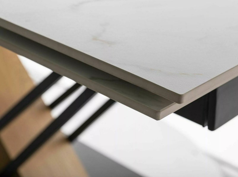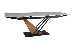 Masa extensibila GENESIS WHITE din ceramica cu efect de marmura alba, MDF cu furnir lemn si metal negru 160-220x90xH75cm
