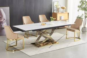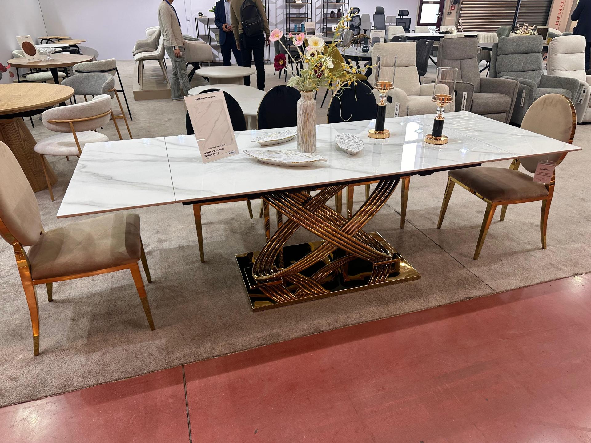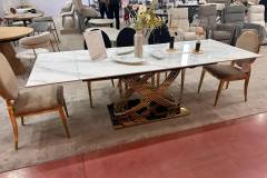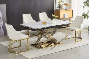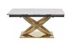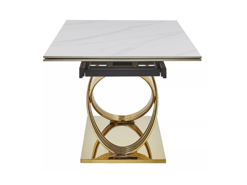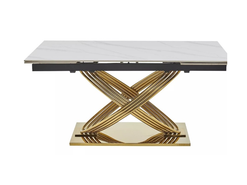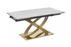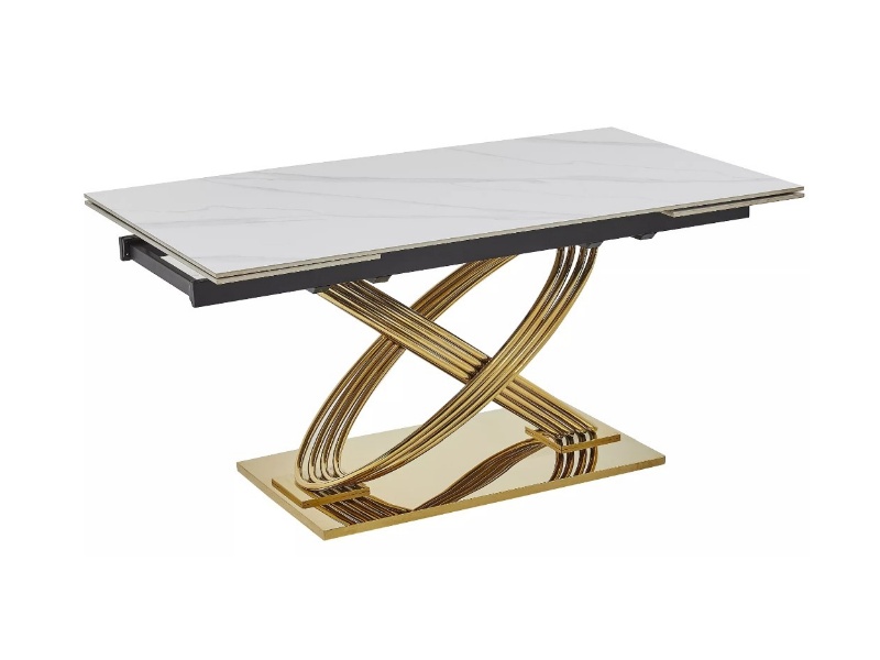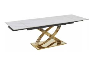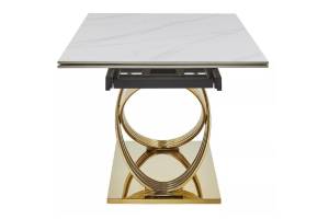 Masa extensibila HERMES CERAMIC II din ceramica cu efect de marmura alba, metal auriu 160-240x90x75cm
