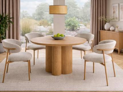 Scaunele NU sunt incluse in pret dar se pot achizitiona separat: https://www.mobelhaus.com/cauta?termen=alure+