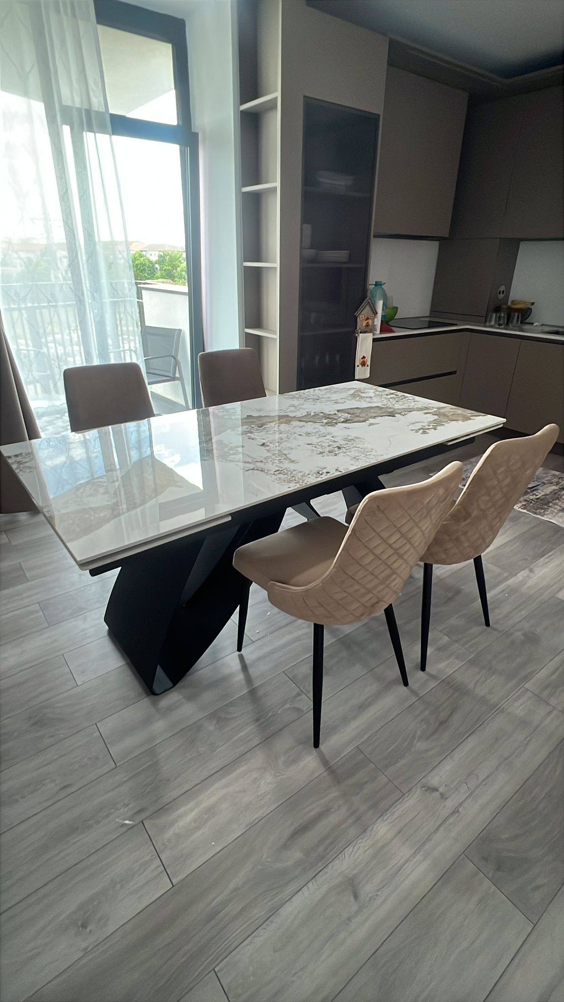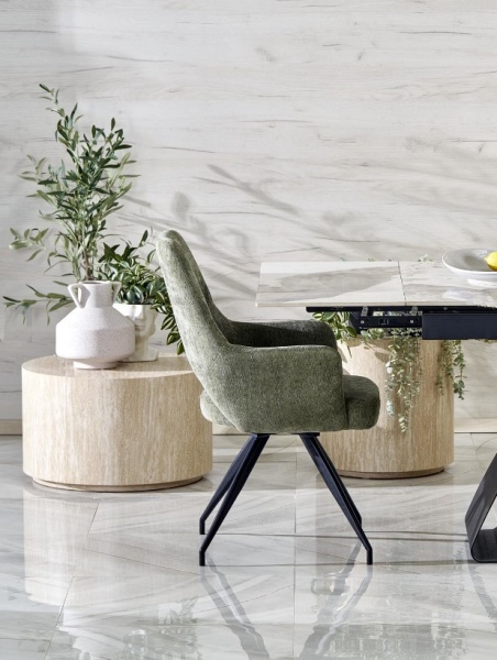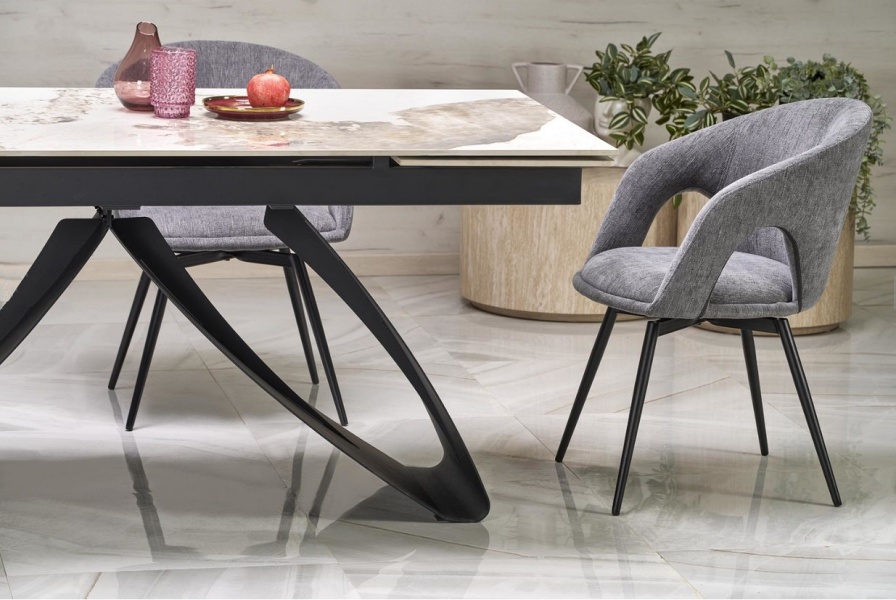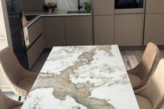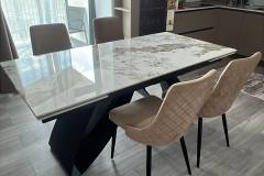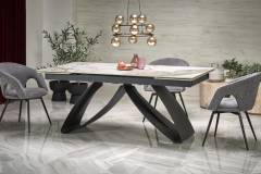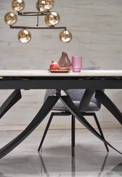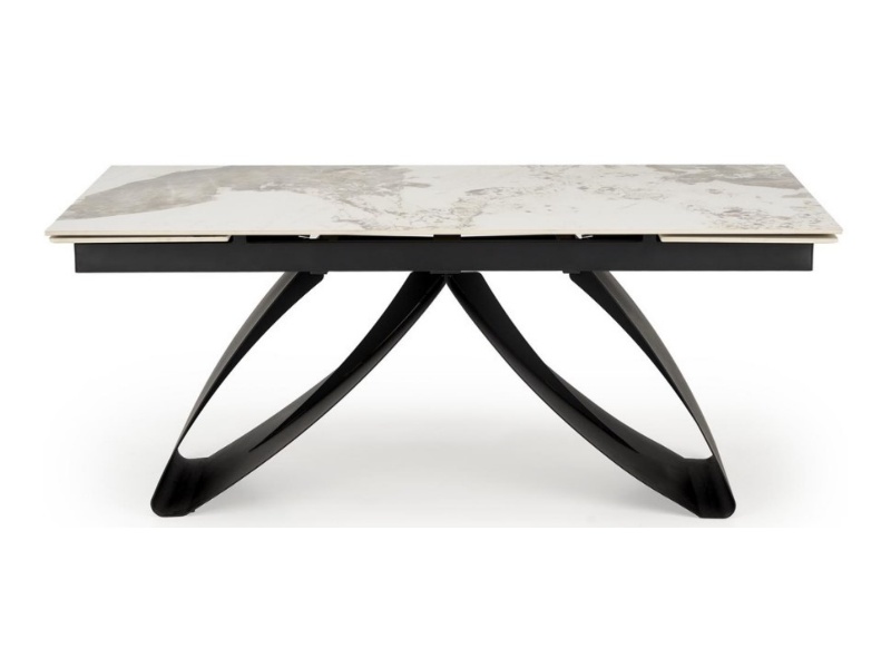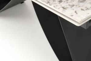 Masa extensibila HILARIO WHITE din piatra sinterizata cu efect de marmura alba, metal negru 180-260x90xH75cm