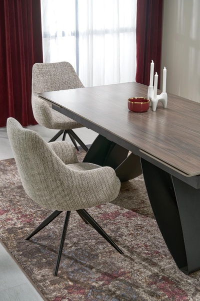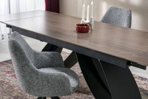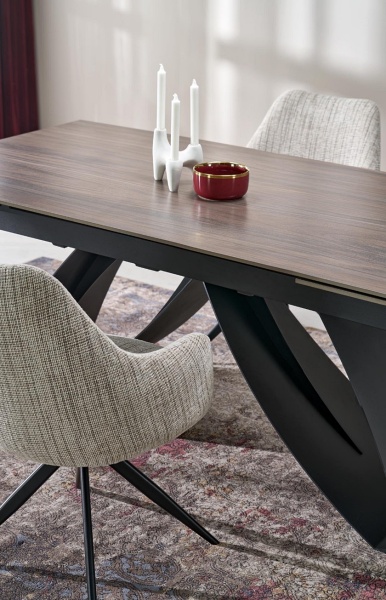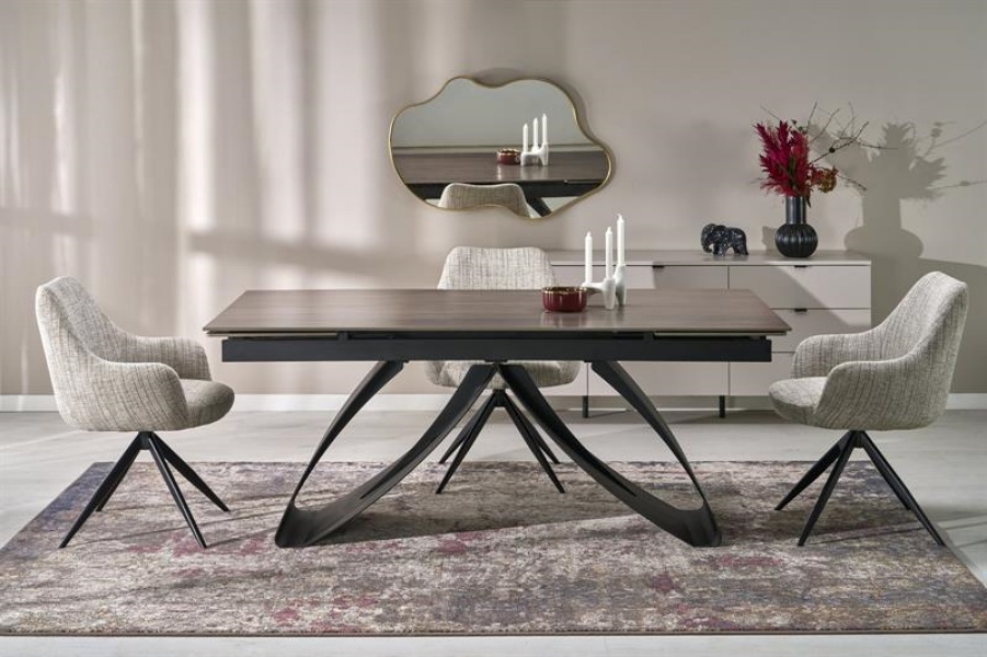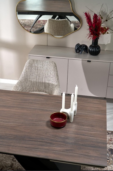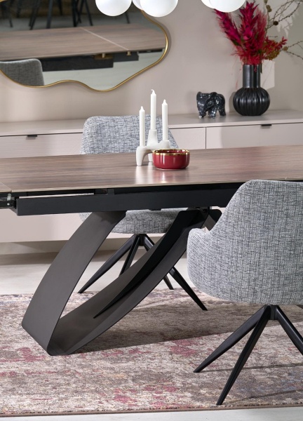 Masa extensibila HILARIO WOOD din piatra sinterizata nuc, metal negru 180-260x90xH75cm