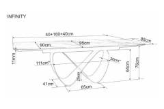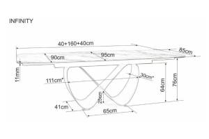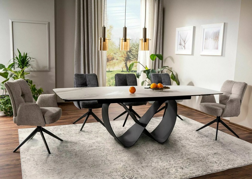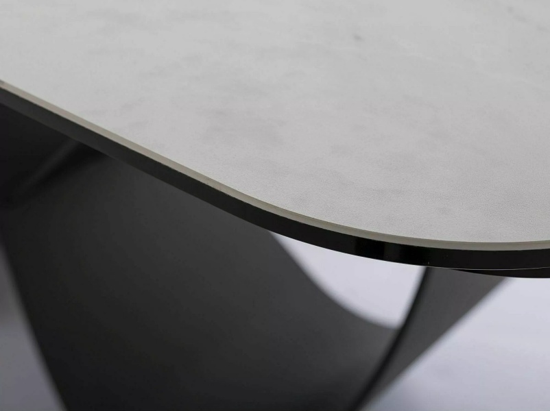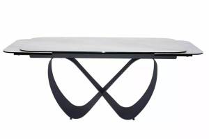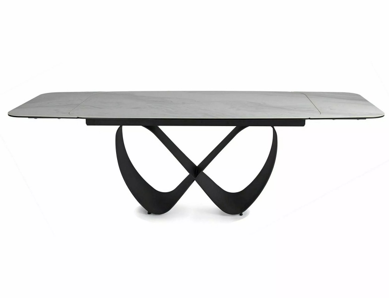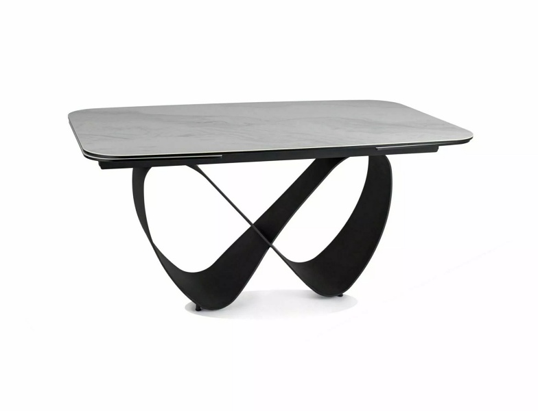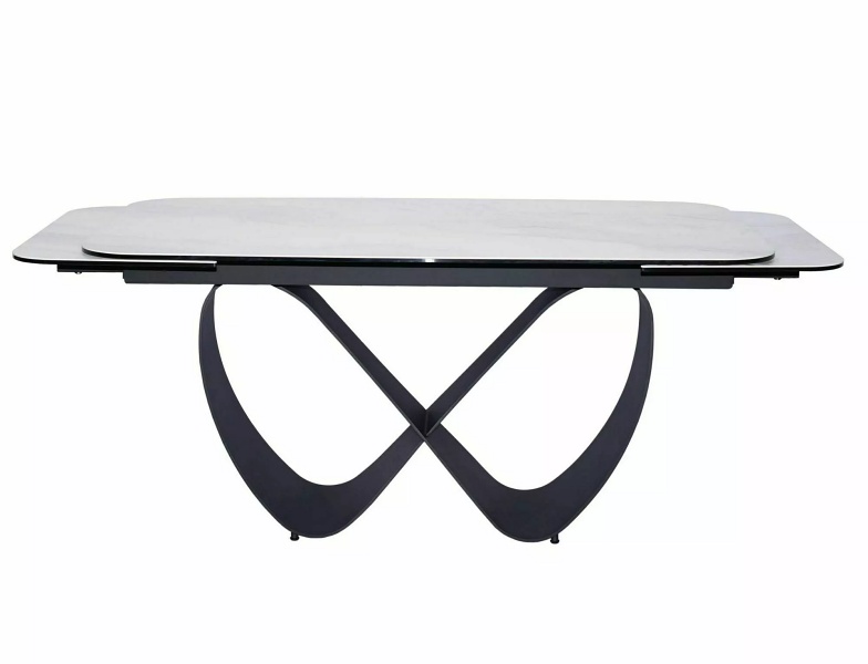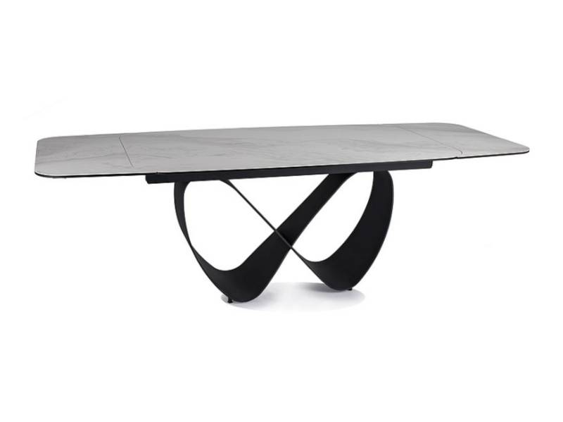 Masa extensibila INFINITY CERAMIC CLOUD din ceramica cu efect de marmura Nature Cloud alba, metal negru 160-240x95xH76cm
