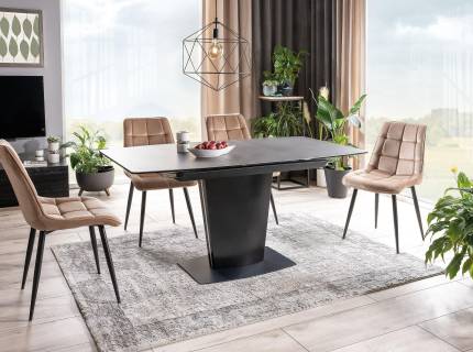 Masa extensibila LORETO CERAMIC din ceramica Italian Ossido Bruno si sticla securizata maro 180-230x90xH76cm