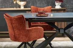 Masa extensibila LUCIANO din ceramica cu efect de marmura albastra, metal negru 180-230x90xH76cm