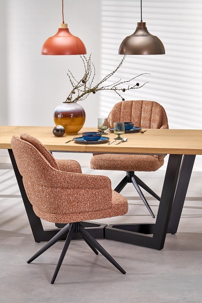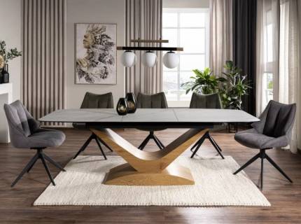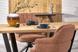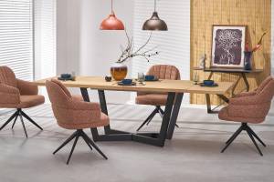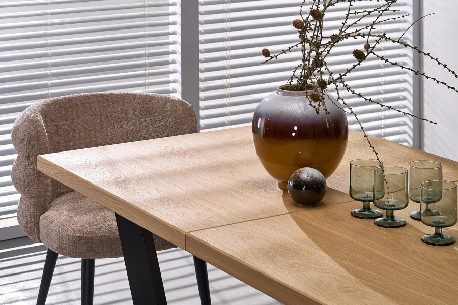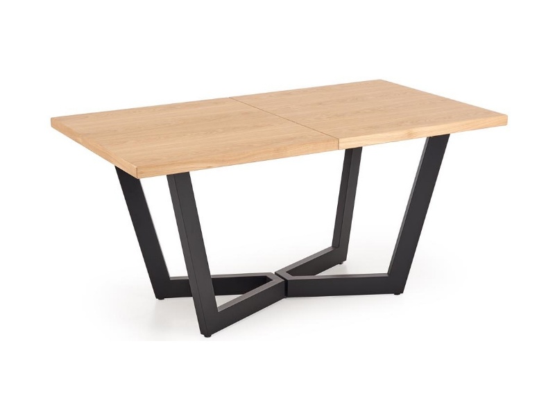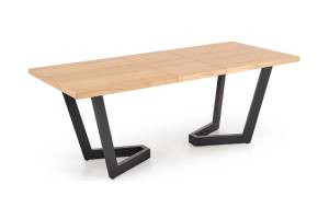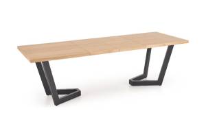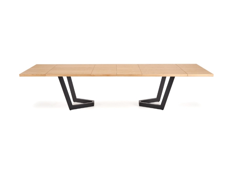 Masa extensibila MASSIVE 2 din placa furniruita si lemn masiv stejar natural, metal negru 160-250-(340)x90xH77cm
