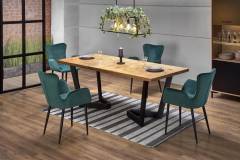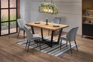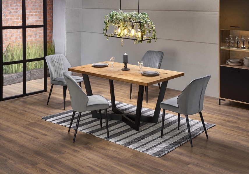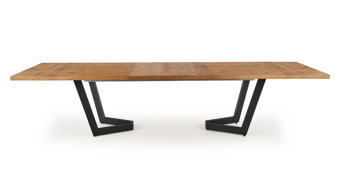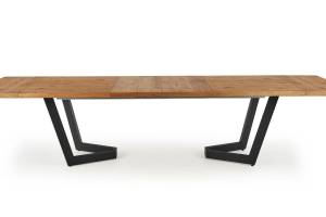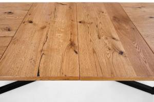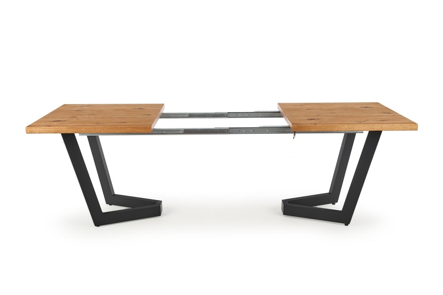 Masa extensibila MASSIVE din placa furniruita si lemn masiv stejar deschis, metal negru 160-250-340x90xH77cm