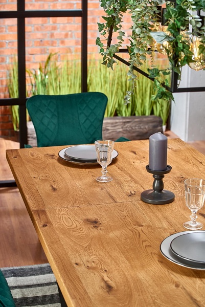 acoperit cu furnir, menit sa sublinieze aspectul rustic si unic al blatului.