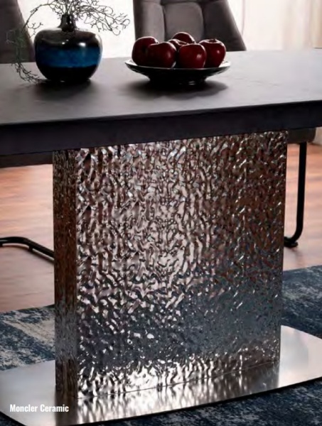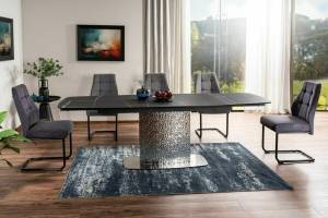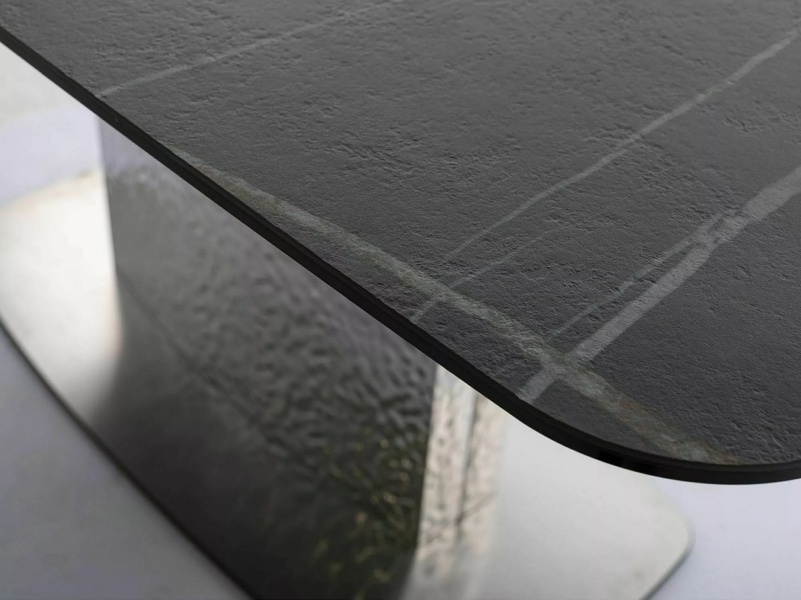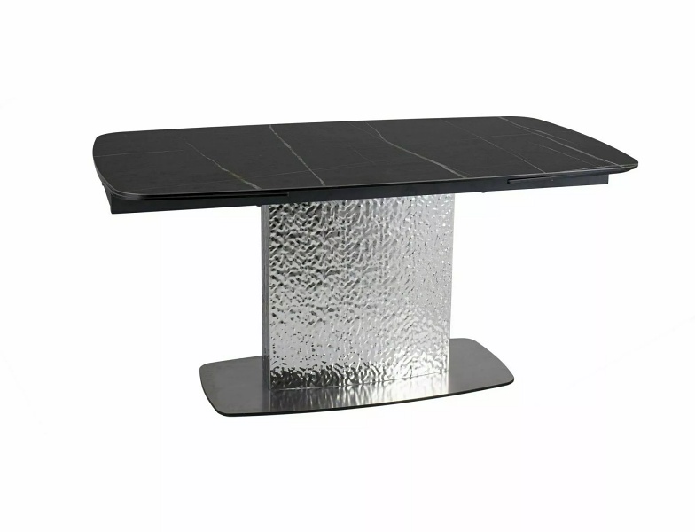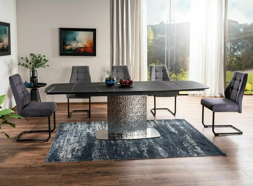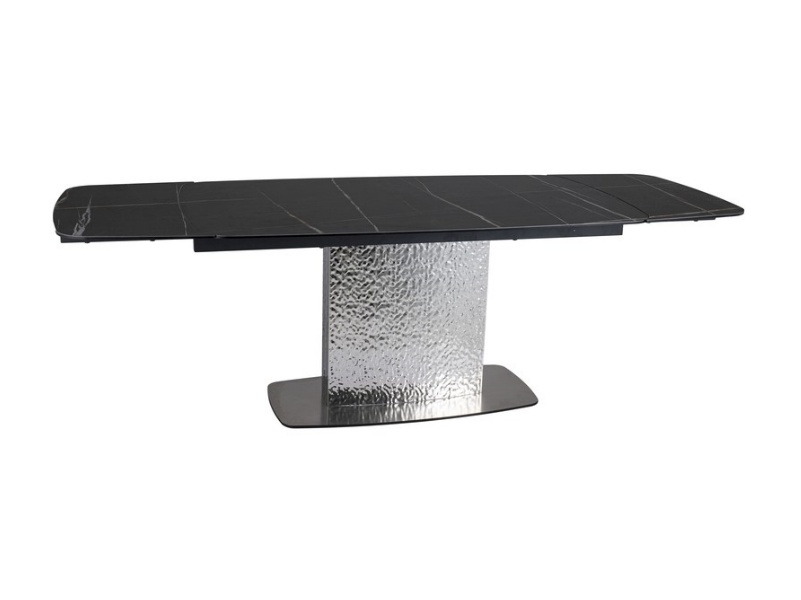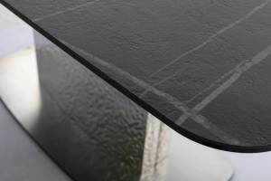 Masa extensibila MONCLER CERAMIC BLACK din ceramica cu efect de marmura Sahara Noir negru metal gri argintiu 160-240x90xH76cm