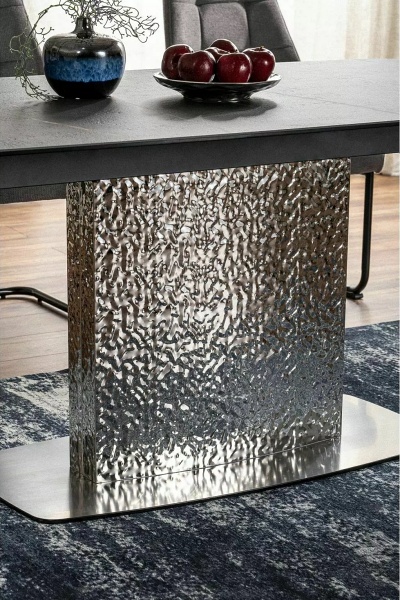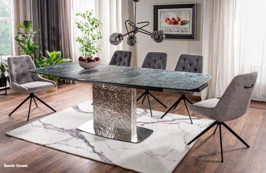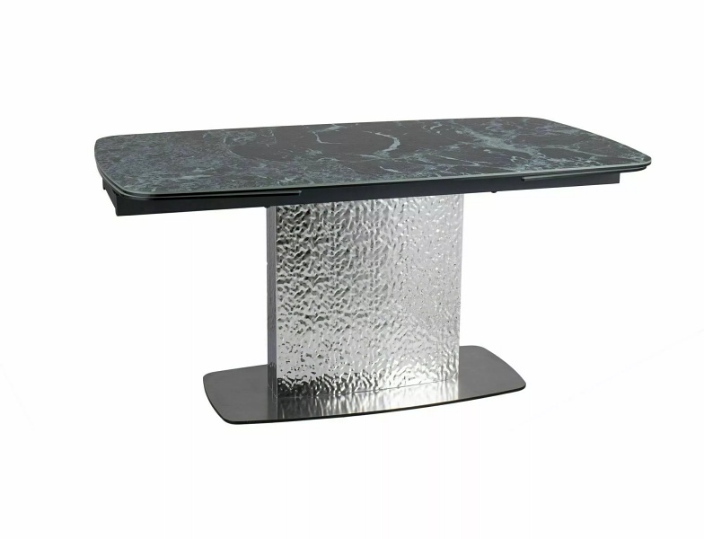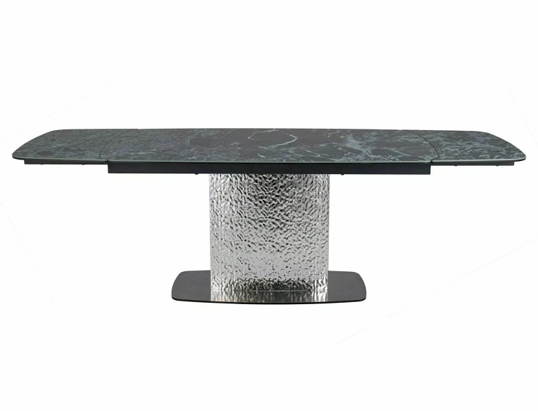 Masa extensibila MONCLER CERAMIC MARINE din ceramica cu efect de marmura italiana Verde Alpi, metal gri argintiu 160-240x90xH76cm