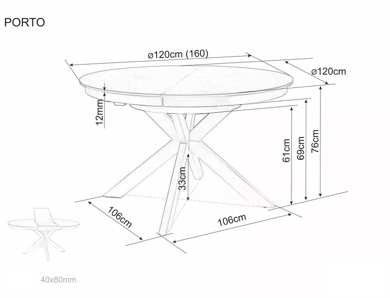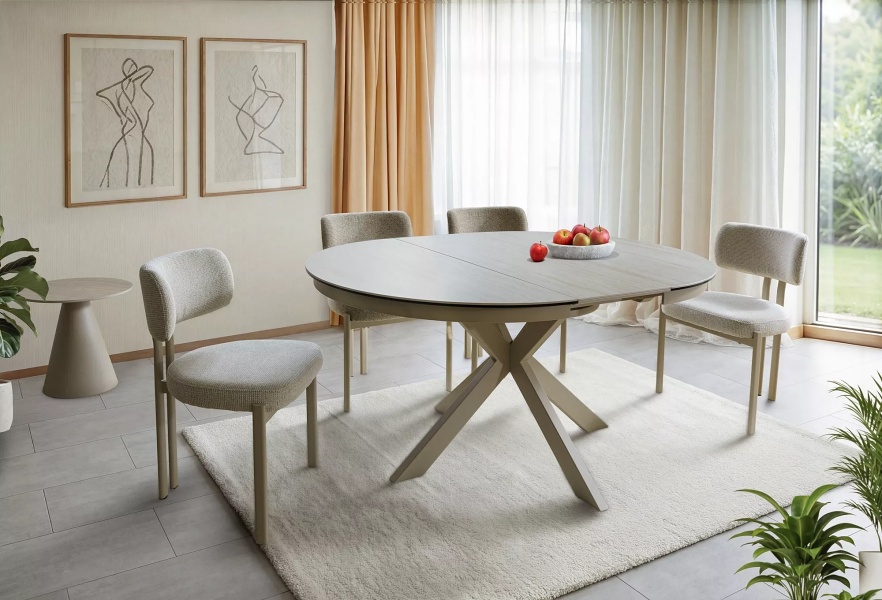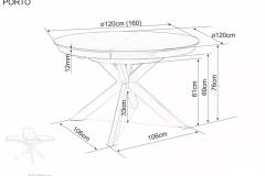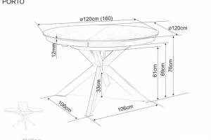 Masa extensibila PORTO CERAMIC TRAVERTIN din sticla securizata si ceramica Travertin, metal casmir 120-160xH76cm