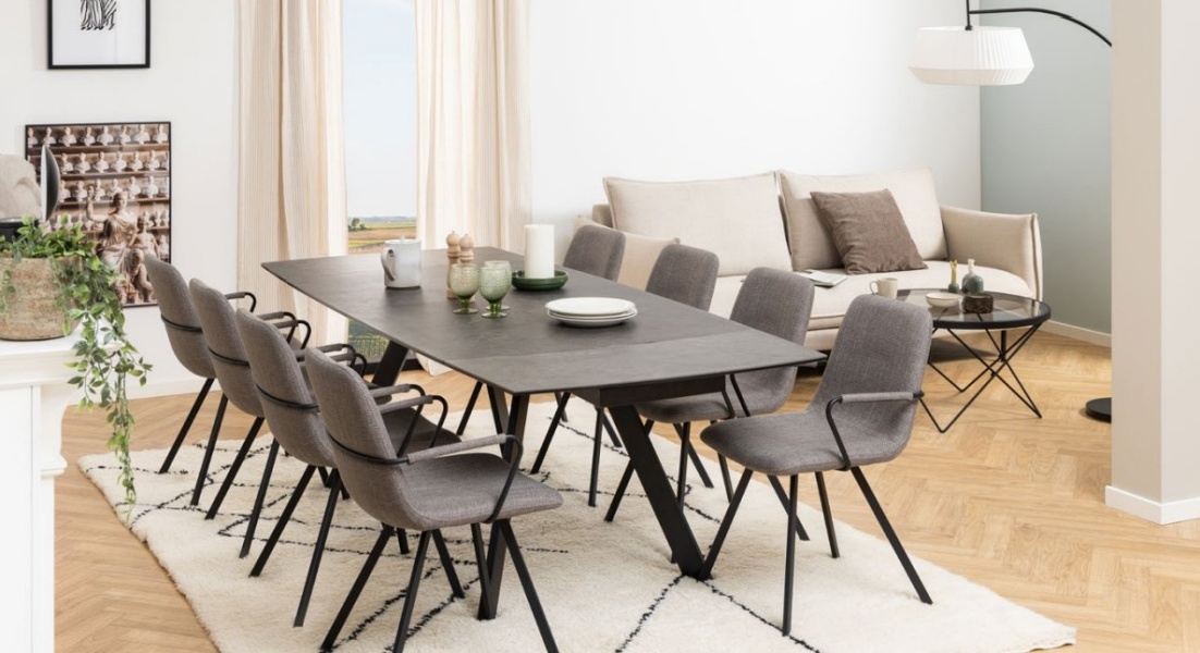 Masa extensibila ROSELLO DARK MARBLE din ceramica cu efect de marmura neagra 160-240x97xH75cm