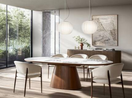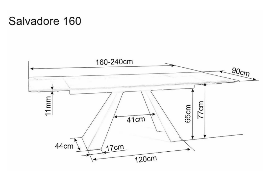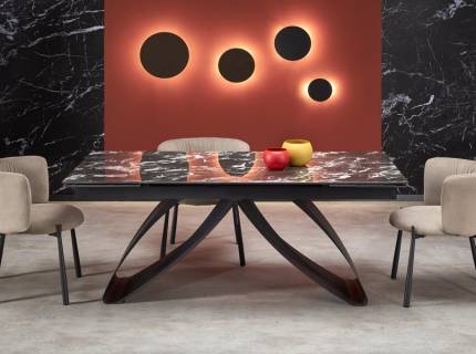 Masa extensibila SALVADORE CERAMIC din cramica cu efect de marmura gri, metal negru 160-240x90xH76cm