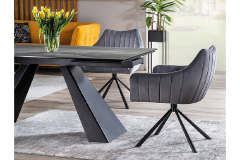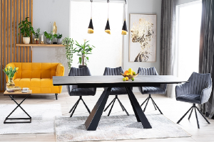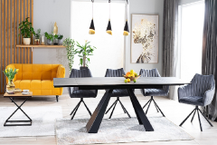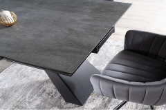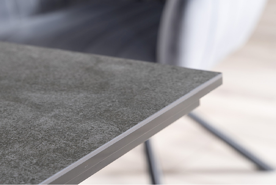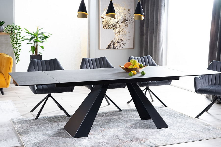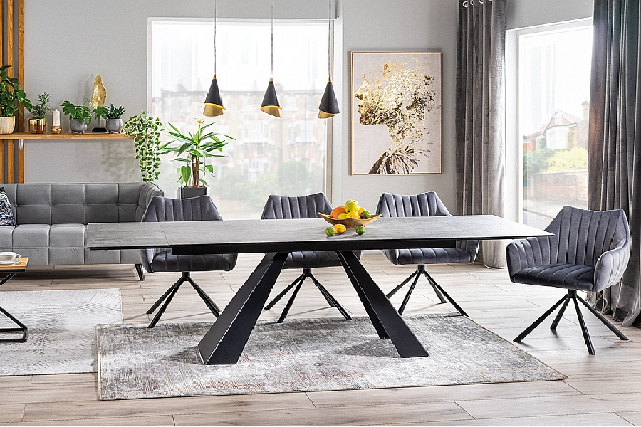 Masa extensibila SALVADORE CERAMIC din cramica cu efect de marmura gri, metal negru 180-260x90xH76cm