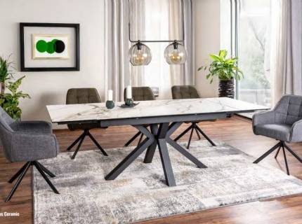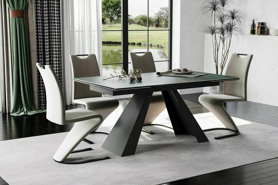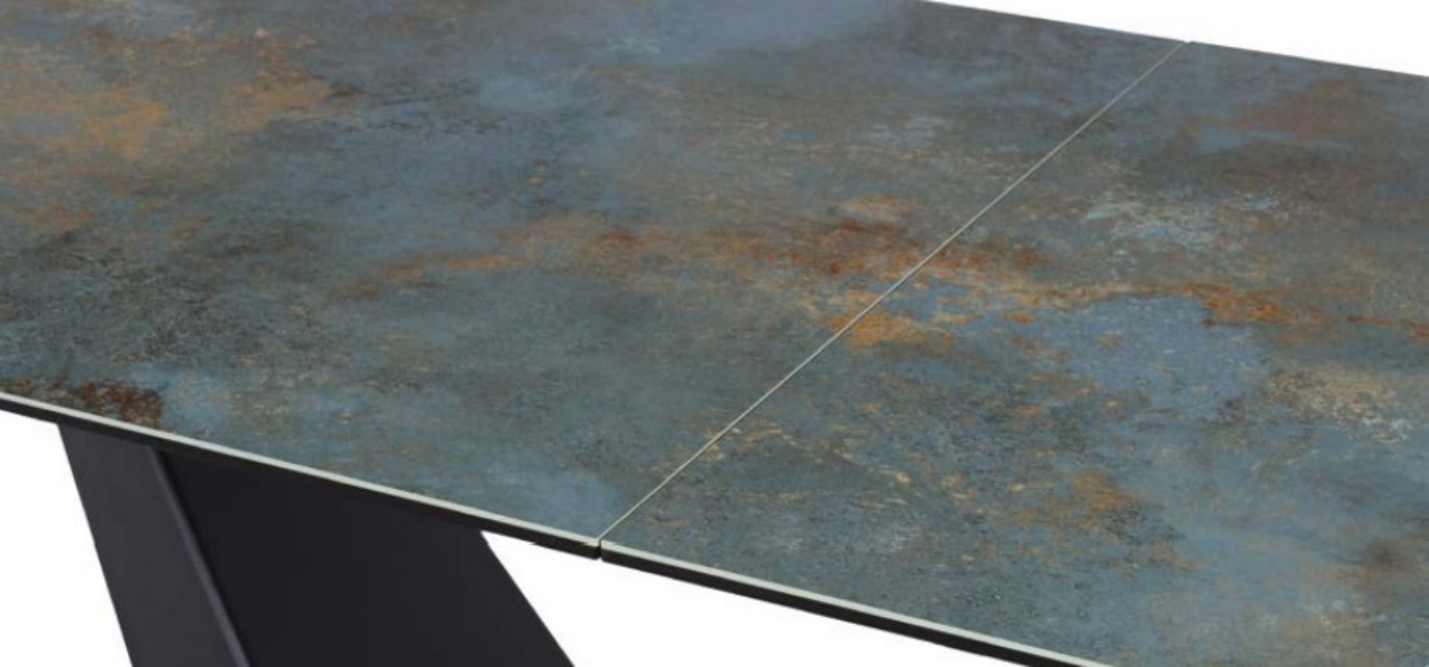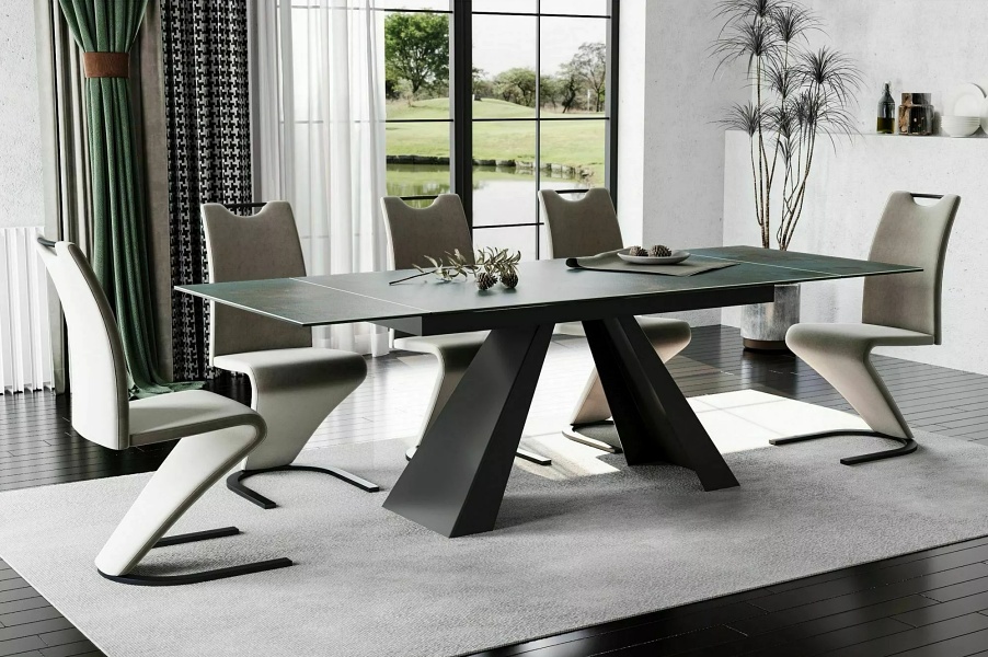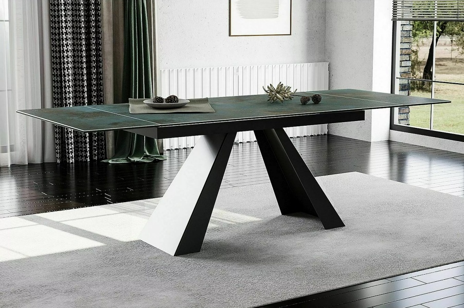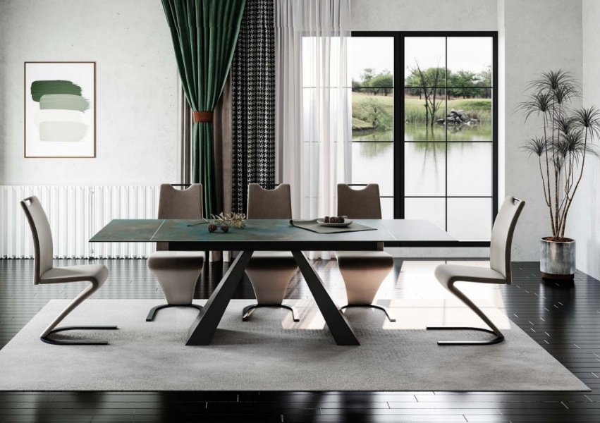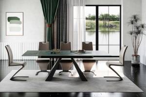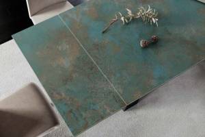 Masa extensibila SALVADORE CERAMIC OSSIDO VERDE din ceramica cu efect de marmura Ossido Verde, metal negru 160-240x90xH77cm