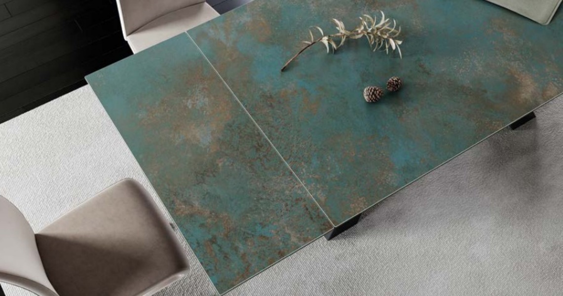 Blat: sticla securizata termorezistenta, efect Ossido Verde, ceramica italiana
