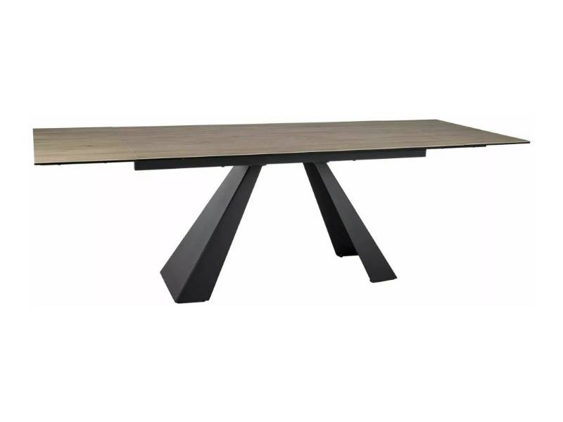 Masa extensibila SALVADORE CERAMIC SABBIA din ceramica in nuanta lemnului deschis, metal negru 160-240x90xH77cm