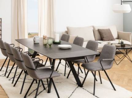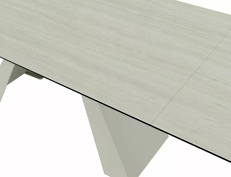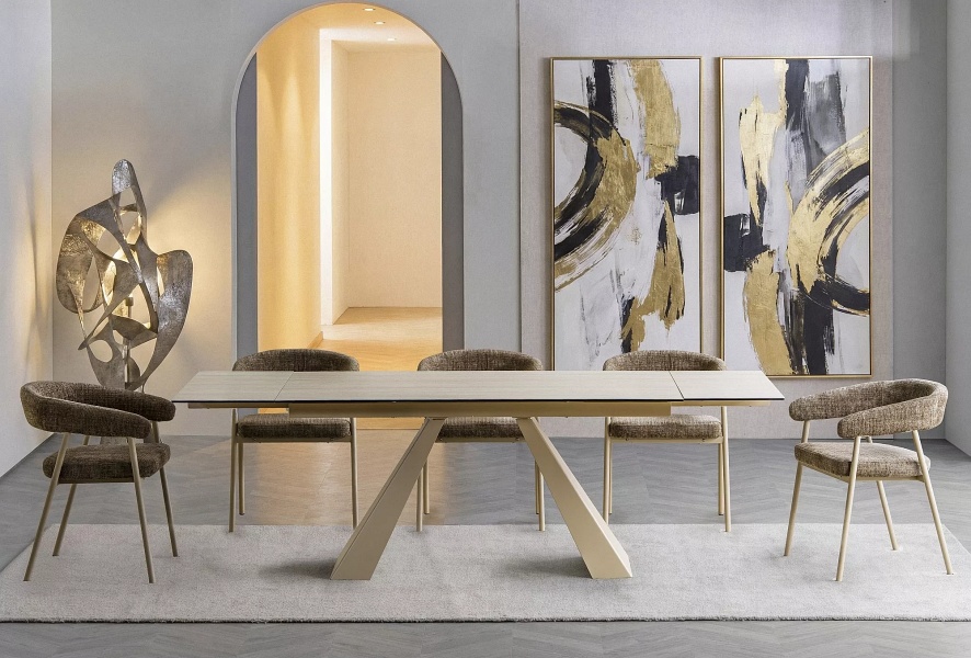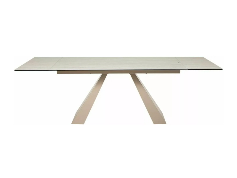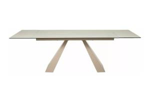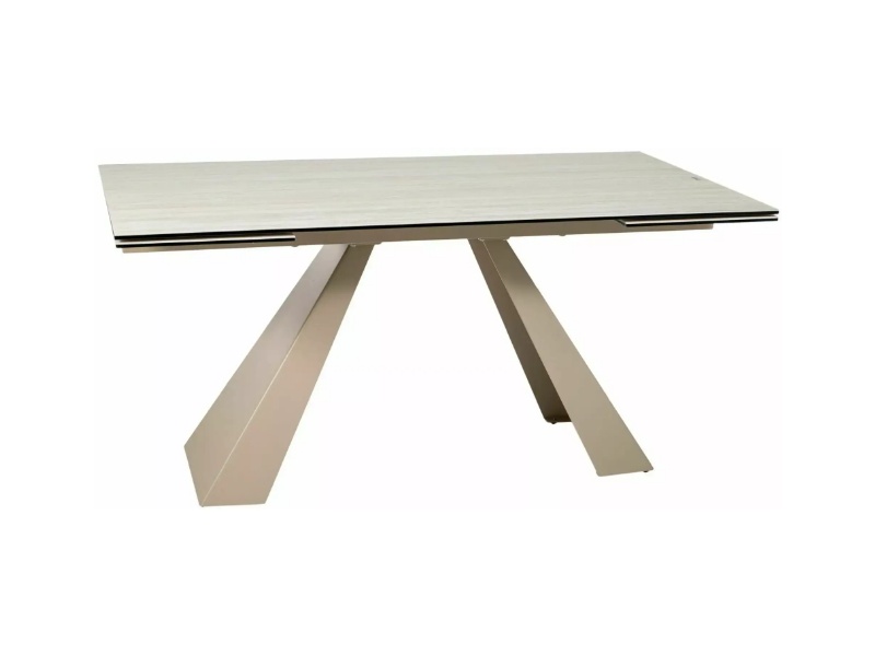 Masa extensibila SALVADORE CERAMIC TRAVERTIN din ceramica travertin bej, sticla securizata, metal casmir 160-240x90xH77cm