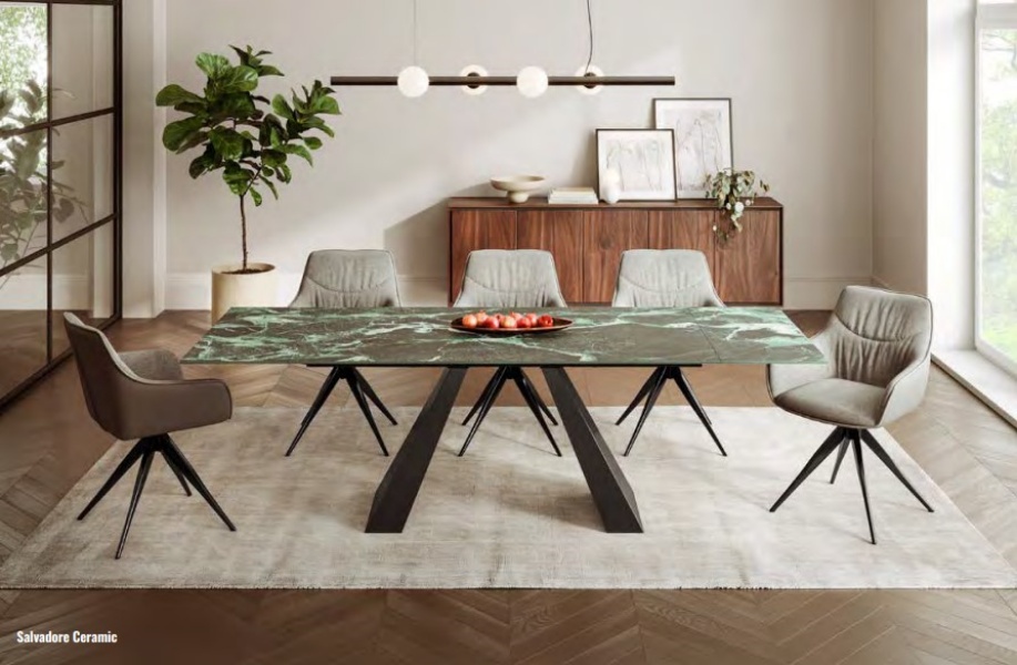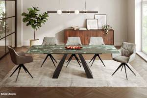 Masa extensibila SALVADORE CERAMIC VERDE ALPI din ceramica cu efect de marmura Verde Alpi, metal negru 160-240x90xH77cm