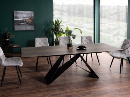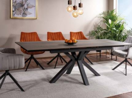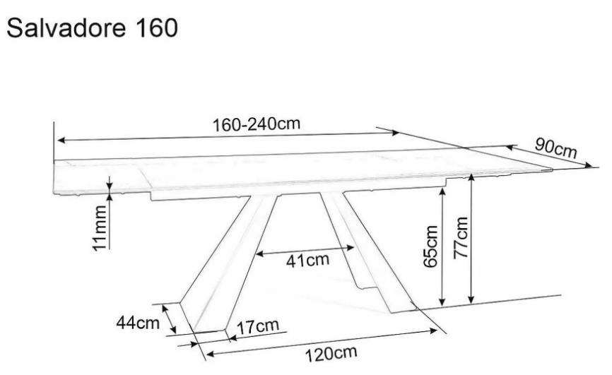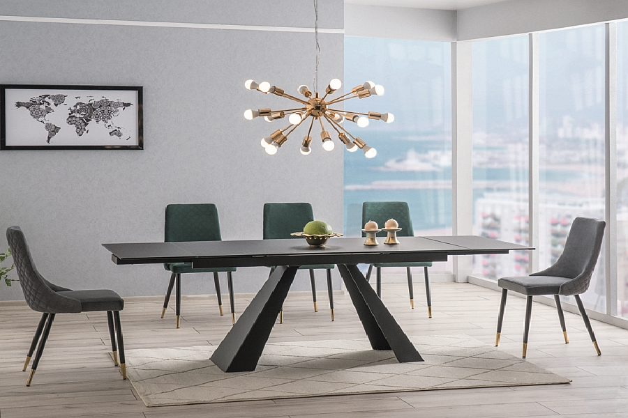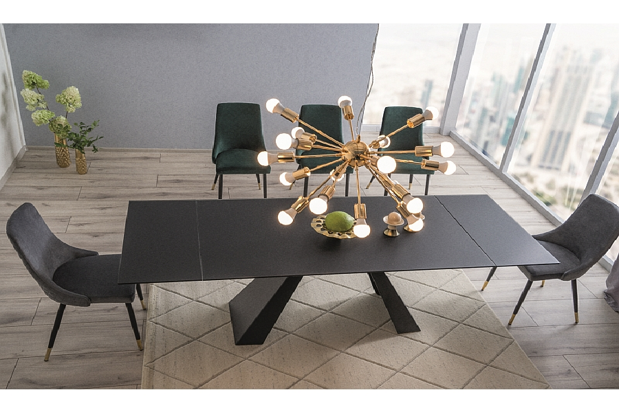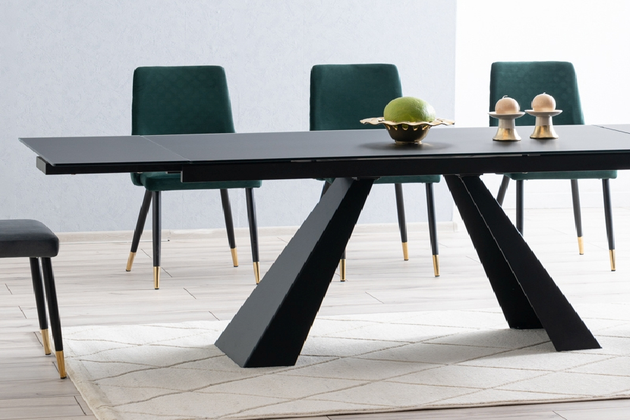Masa extensibila SALVADORE din sticla securizata termorezistenta neagra, metal negru 160-240x90xH76cm