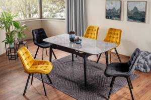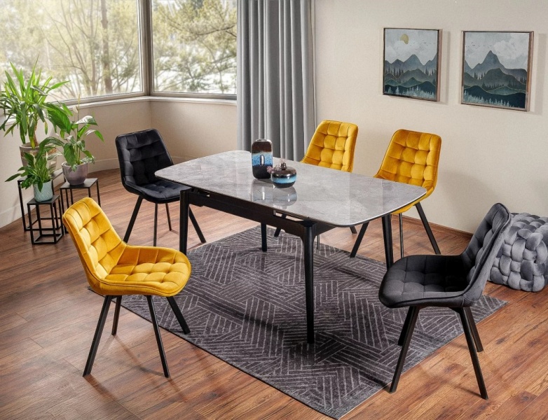 Masa extensibila SENTO GREY din ceramica gri lucios, lemn negru 120-180x80xH75cm