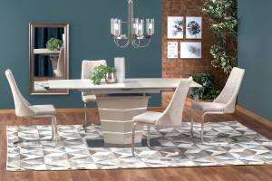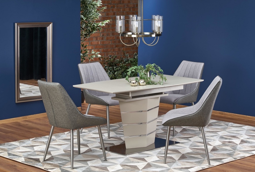Masa extensibila SORENTO din MDF si sticla sampanie, metal crom 140-180x80xH76cm