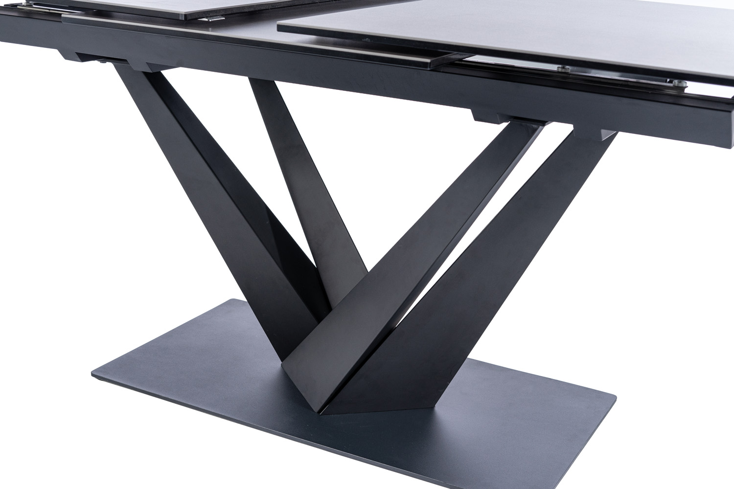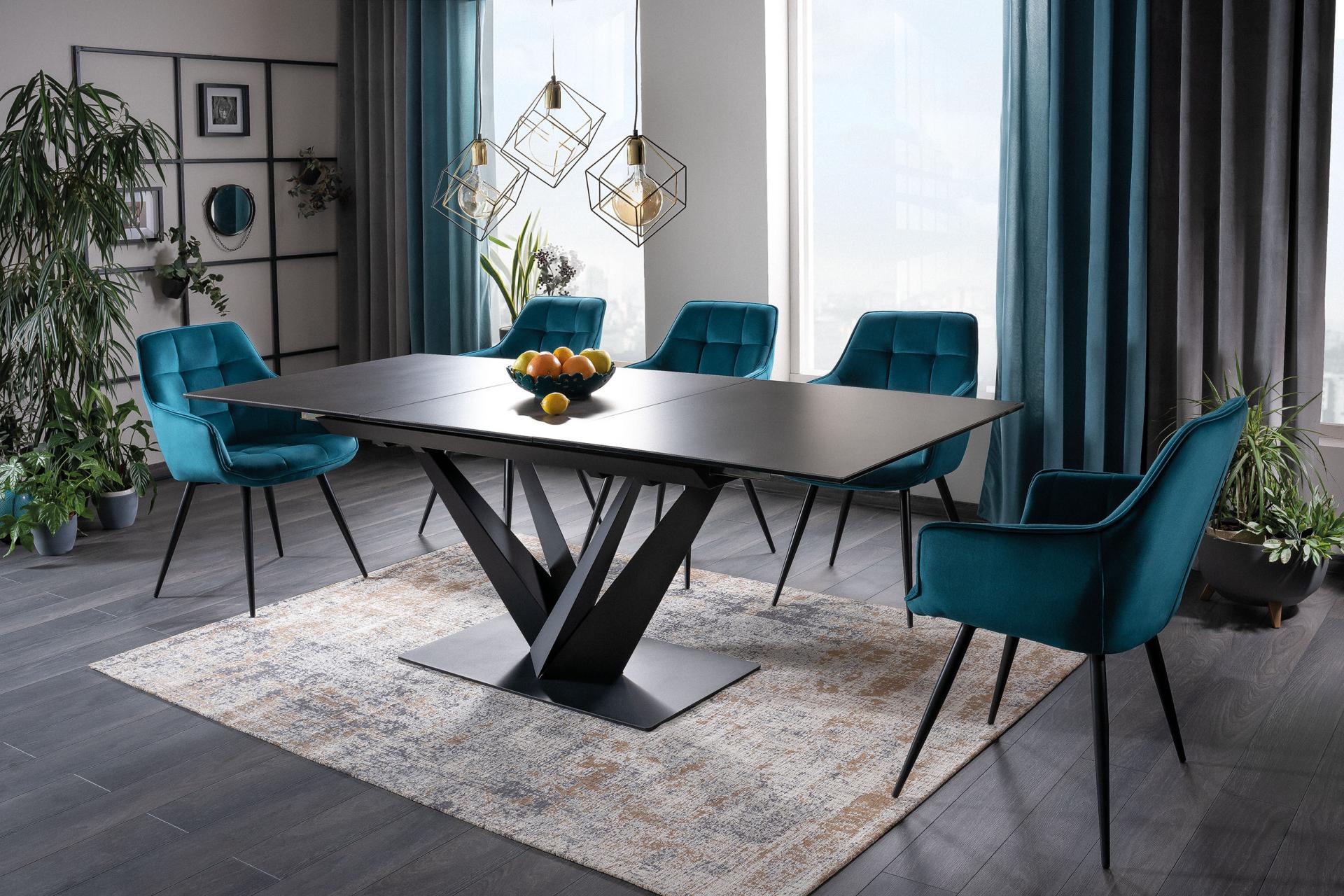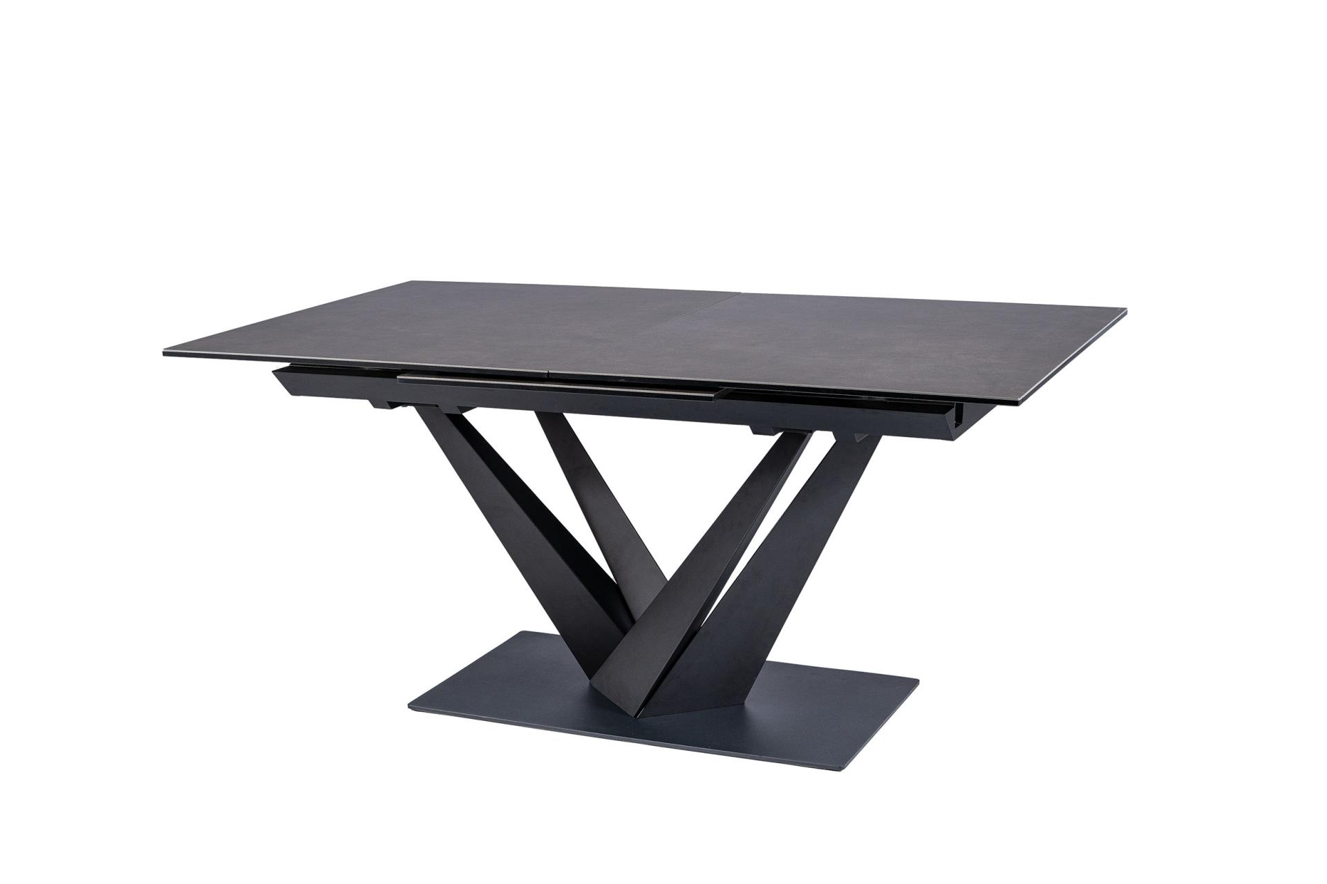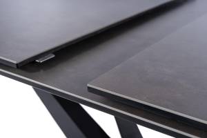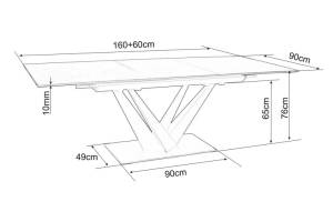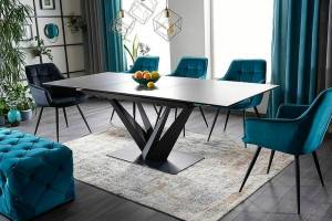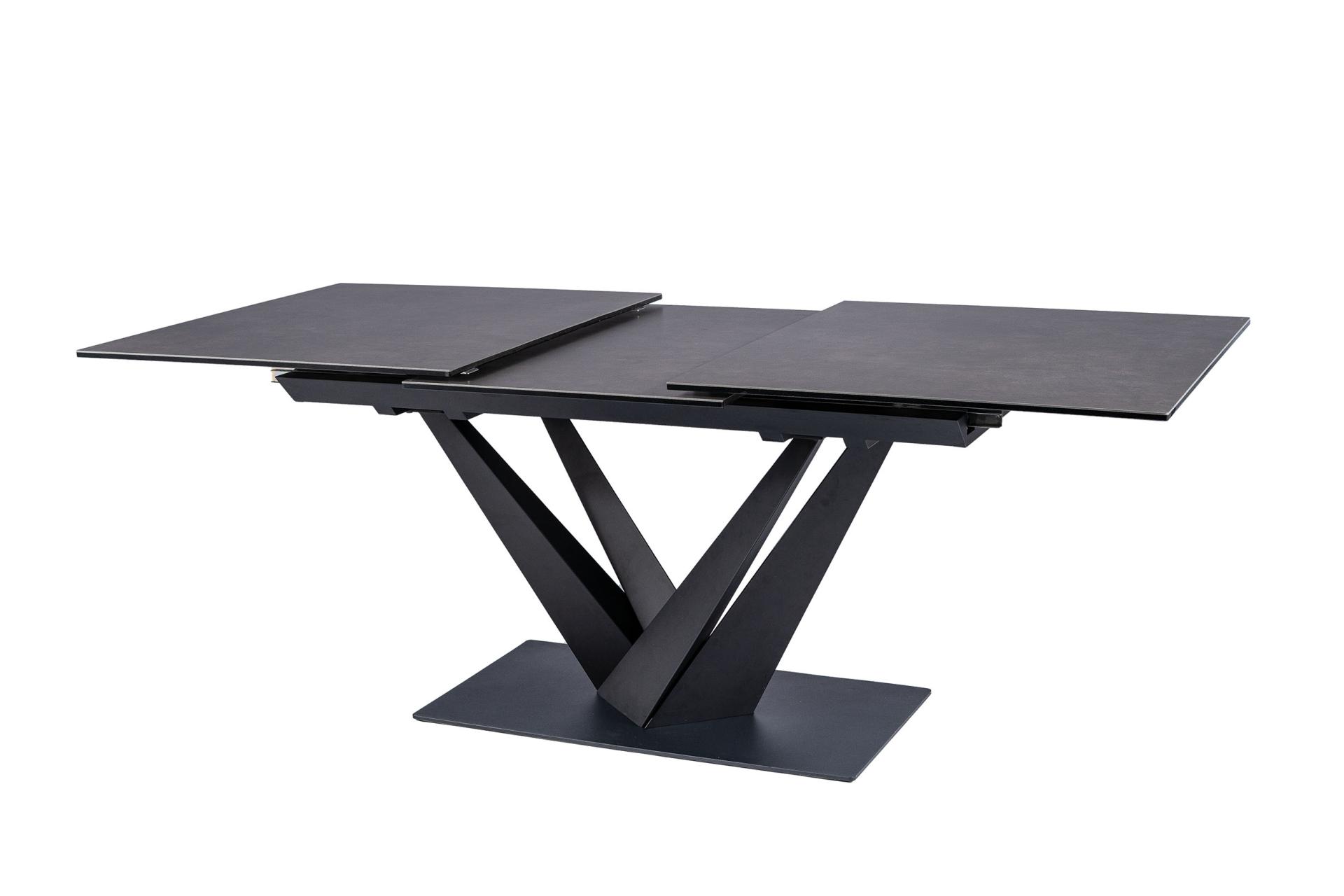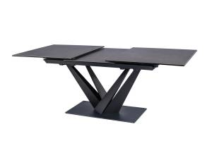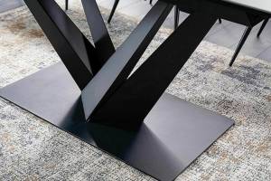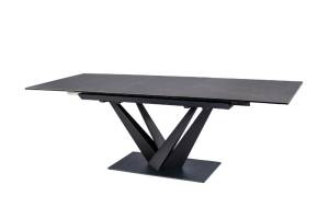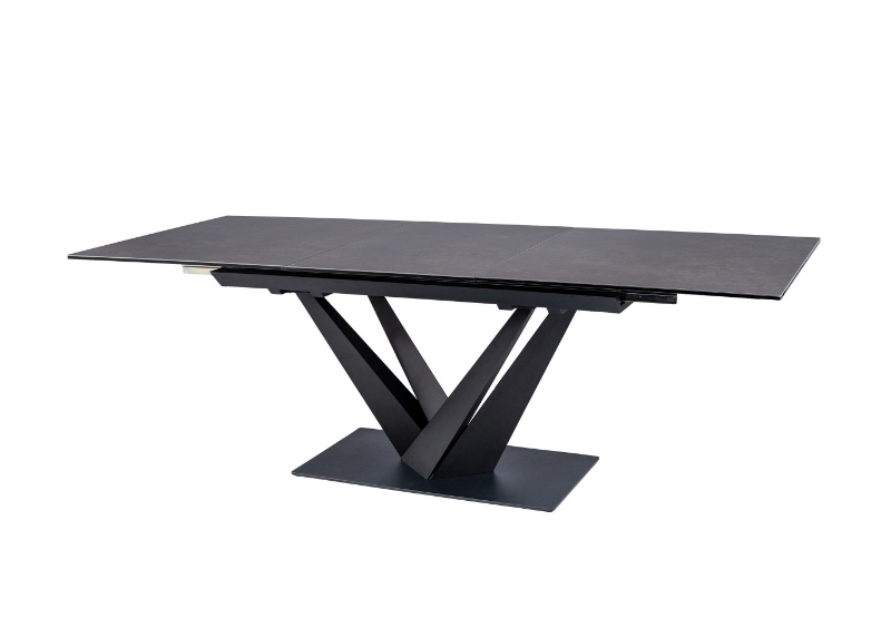 Masa extensibila SORENTO din sticla securizata termorezistenta cu efect de marmura neagra, metal negru 160-220x90xH76cm