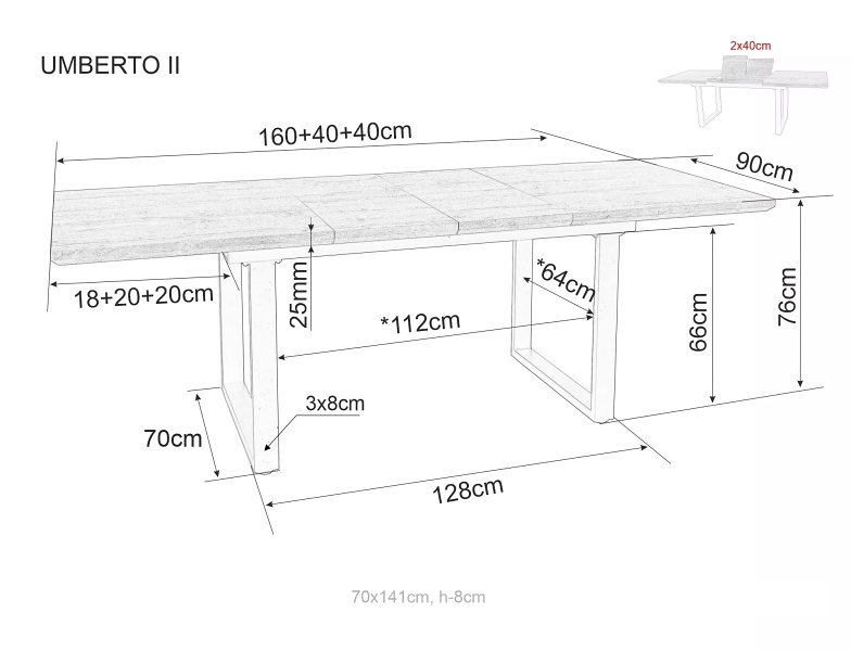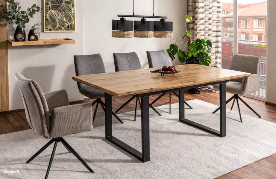 Masa extensibila UMBERTO II din MDF si furnir stejar artisan, metal negru 160-240x90xH76cm