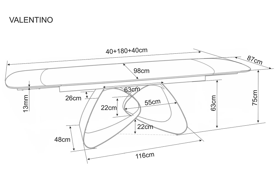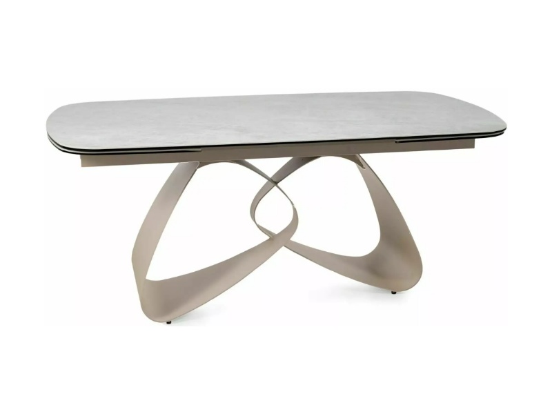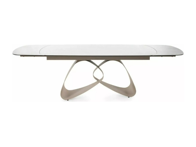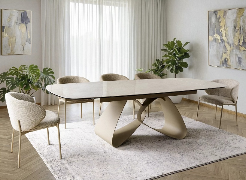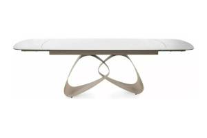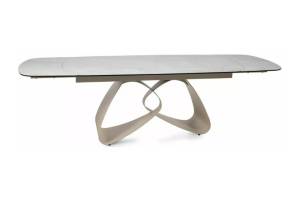 Masa extensibila VALENTINO CERAMIC din ceramica Taj Mahal bej lucios, sticla securizata si metal casmir 180-260x87xH75cm