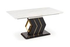 Masa extensibila VINCENZO din MDF cu efect de marmura alba, metal negru si auriu 160-200x90xH77cm
