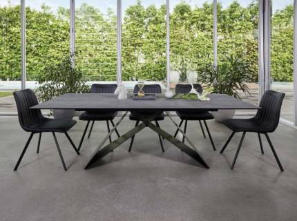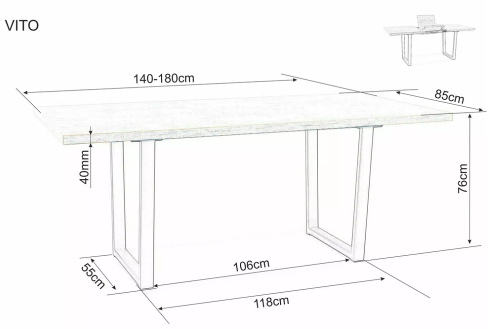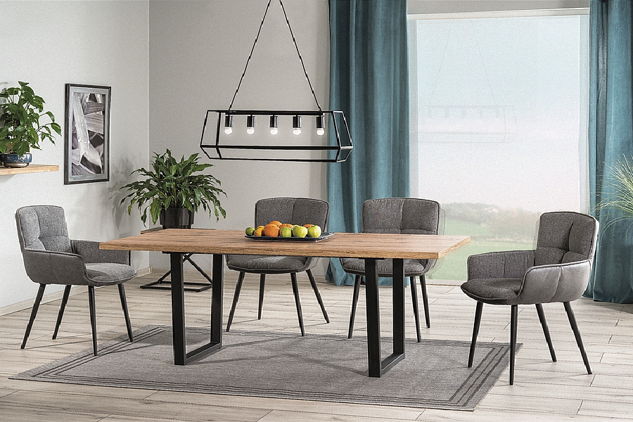 Masa extensibila VITO din MDF si furnir stejar Artisan, metal negru 140-180x85xH76cm