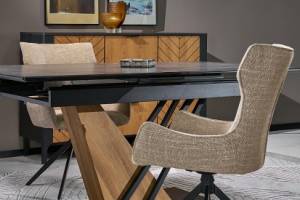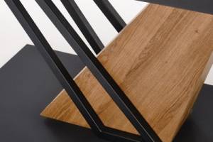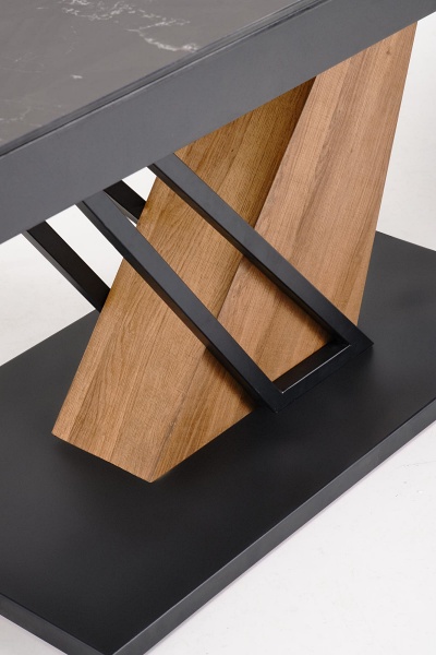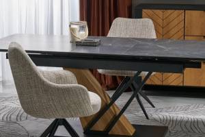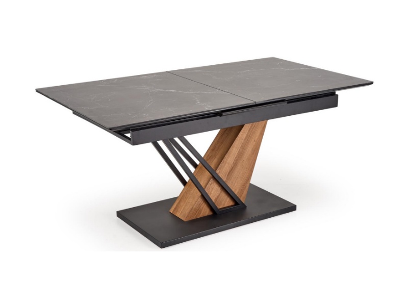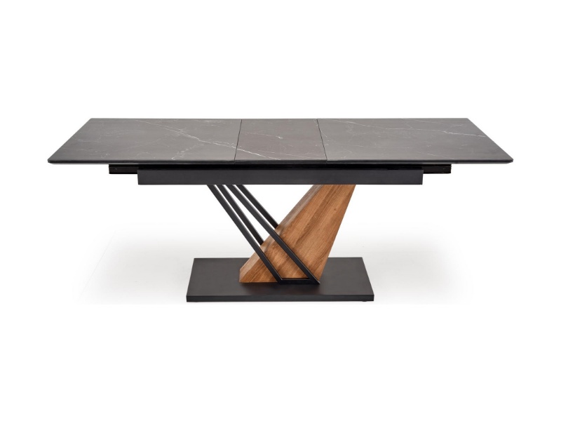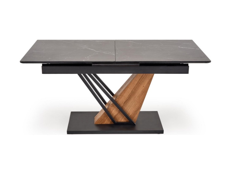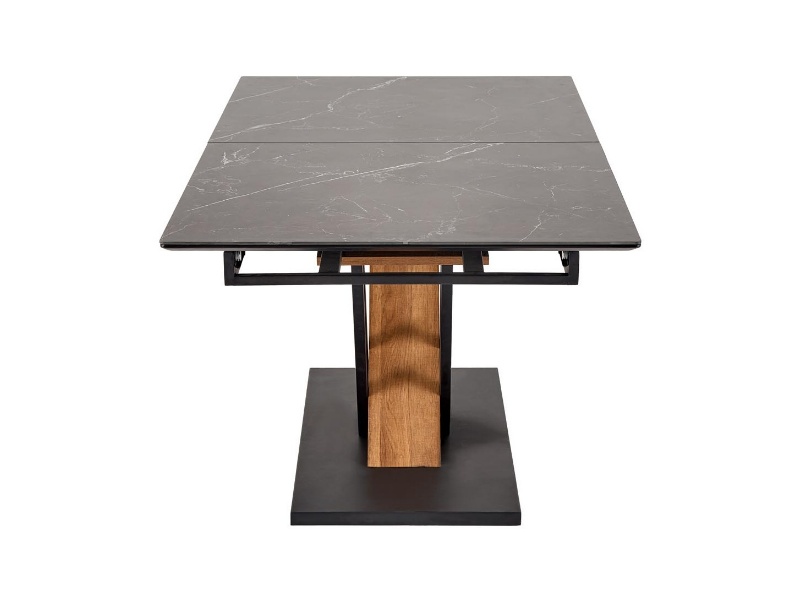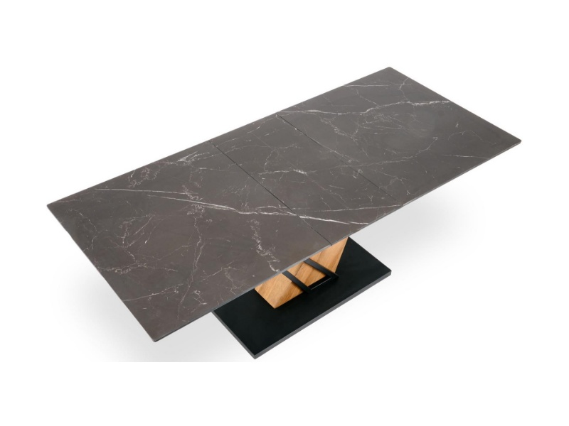 Masa extensibila VOLANT din MDF cu efect de marmura neagra, metal negru si stejar auriu 140-180x90xH76cm