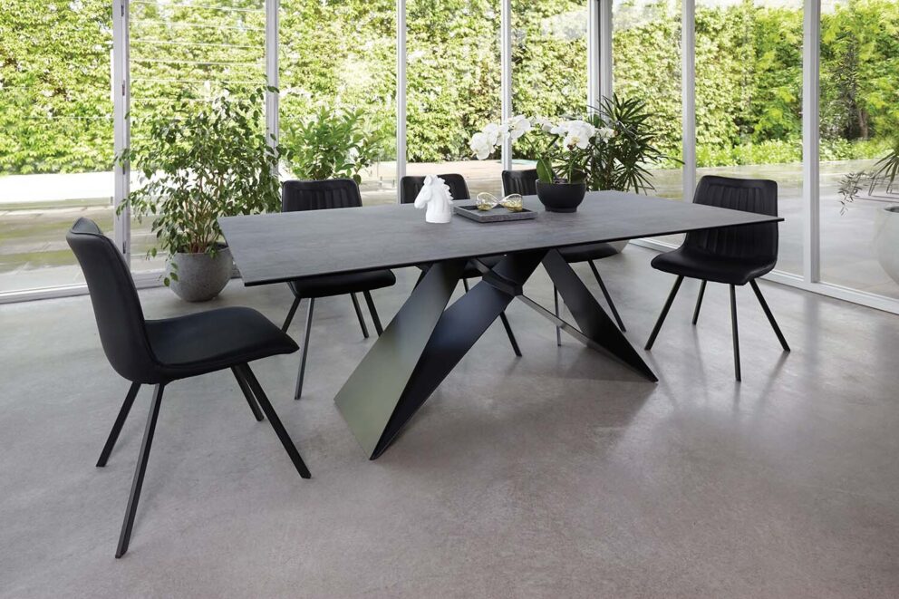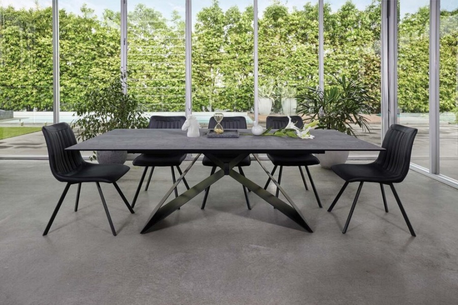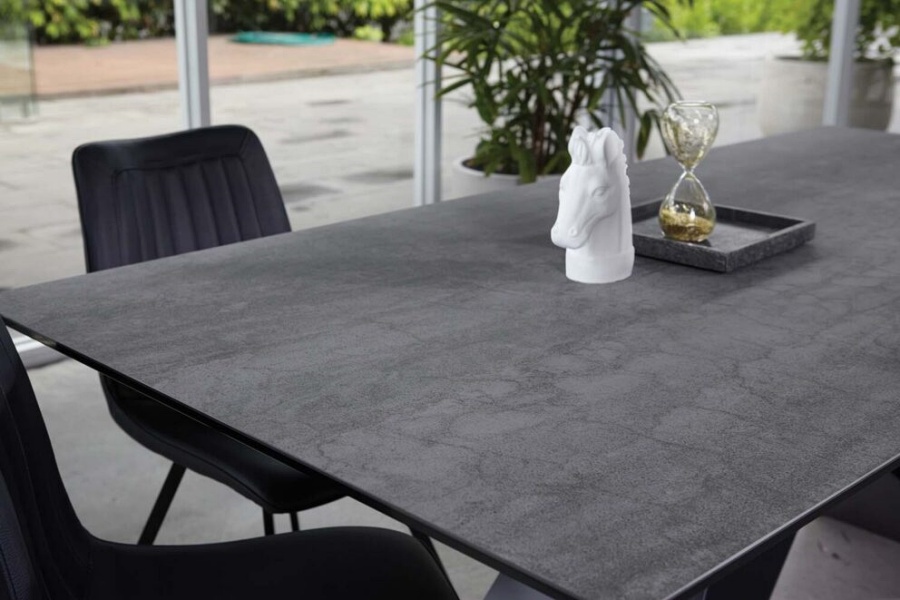 Masa extensibila WESTIN CERAMIC GREY din ceramica italiana Piatra de Savoia gri, metal negru 160-240x90xH77cm