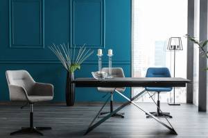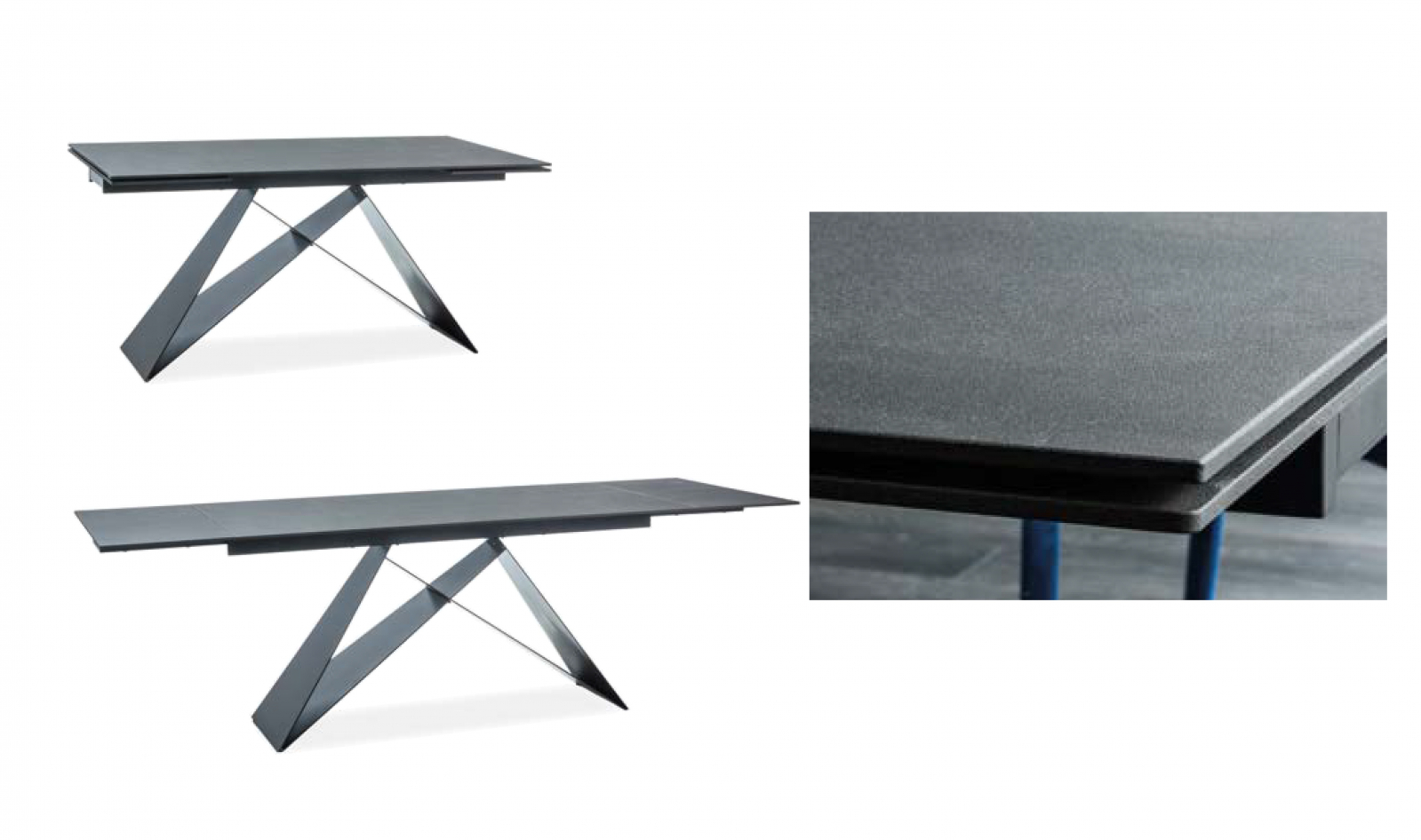 Masa extensibila WESTIN II din sticla securizata termorezistenta cu efect de piatra negru mat, metal negru 160-240x90xH76cm