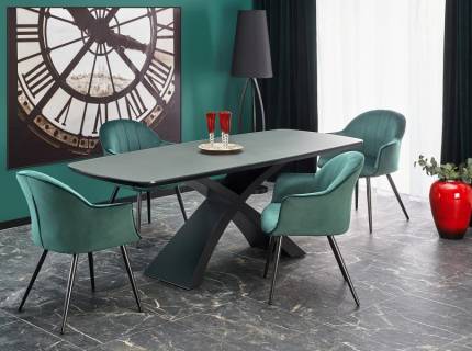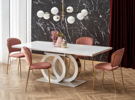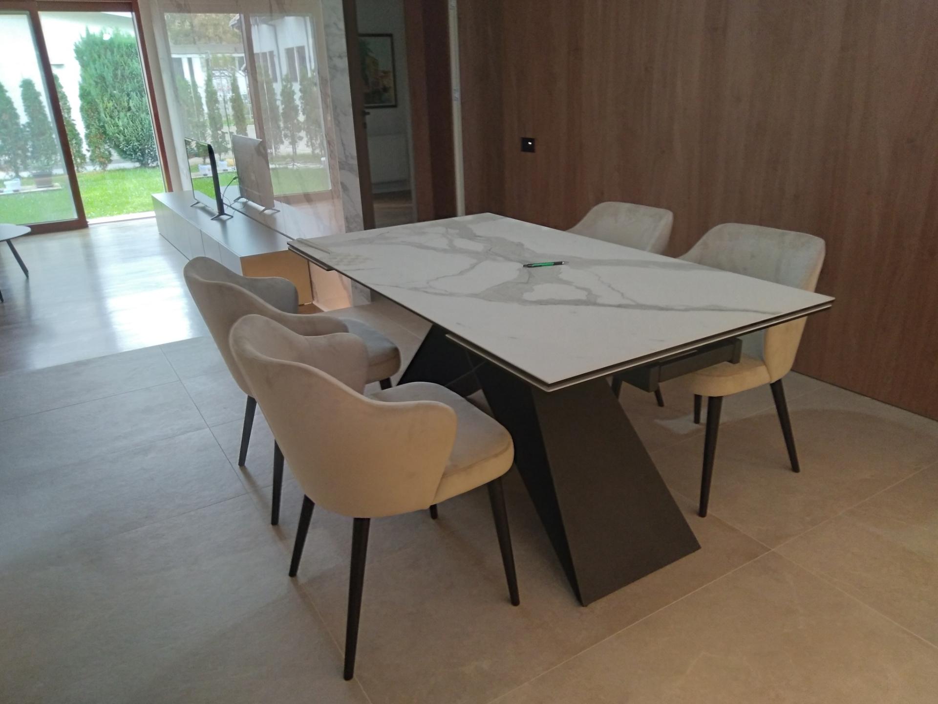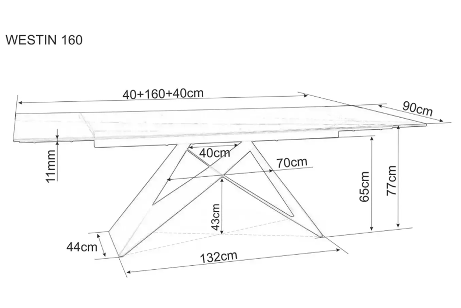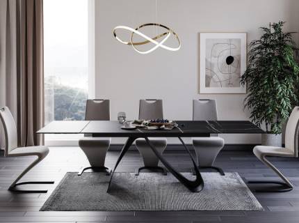 Masa extensibila WESTIN III CERAMIC din ceramica cu efect de marmura alba, metal negru 160-240x90xH76cm