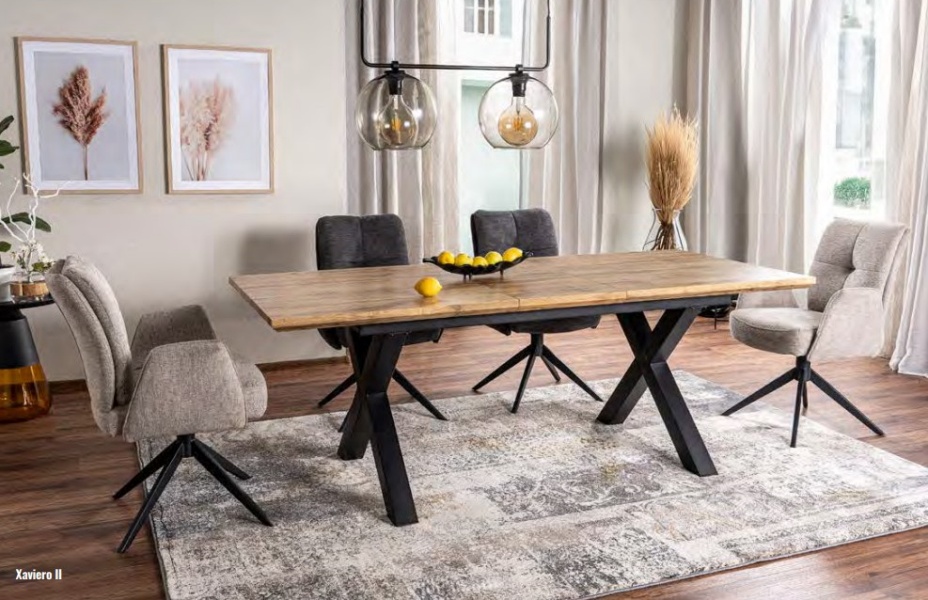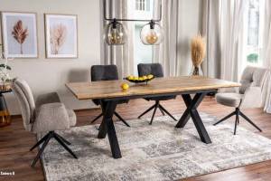 Masa extensibila XAVIERO II din MDF si furnir stejar artisan, metal negru 160-240x90xH76cm