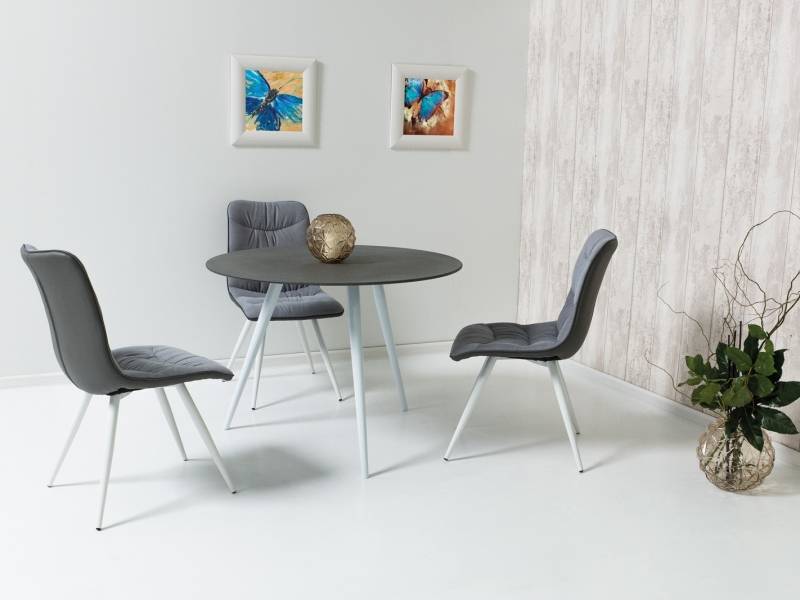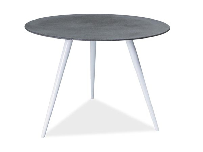 Masa rotunda EVITA din sticla securizata termorezistenta gri piatra, metal alb 100xH76cm