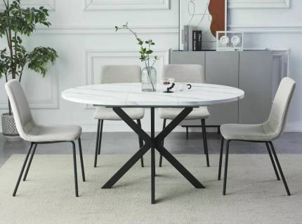 Masa SAMUEL din MDF si sticla cu efect de marmura alba, metal negru 120x80xH75cm