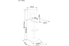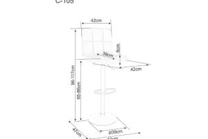 Scaun tapitat pentru bar C-105 VELVET reglabil pe inaltime, catifea grey 42x47xH96-117cm, picior negru