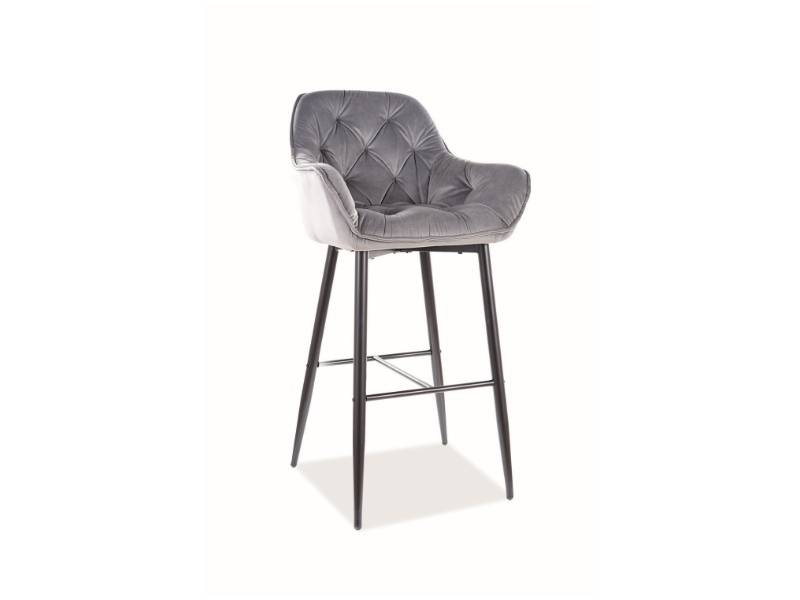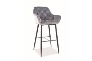 Scaun tapitat pentru bar CHERRY VELVET H-1 catifea grey 56x56xH105cm, picioare negre