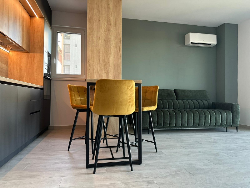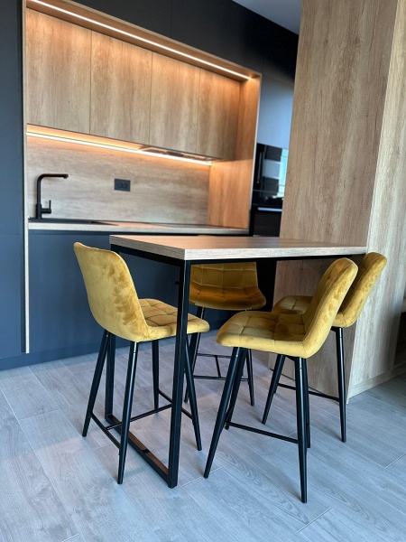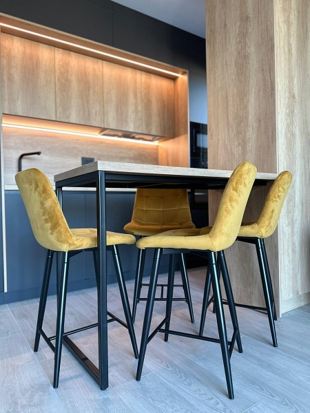 Scaun tapitat pentru bar CHIC H-2 VELVET catifea curry 46x54xH92cm, picioare negre