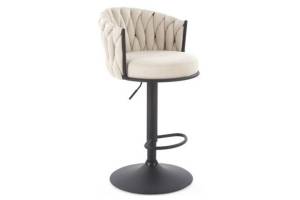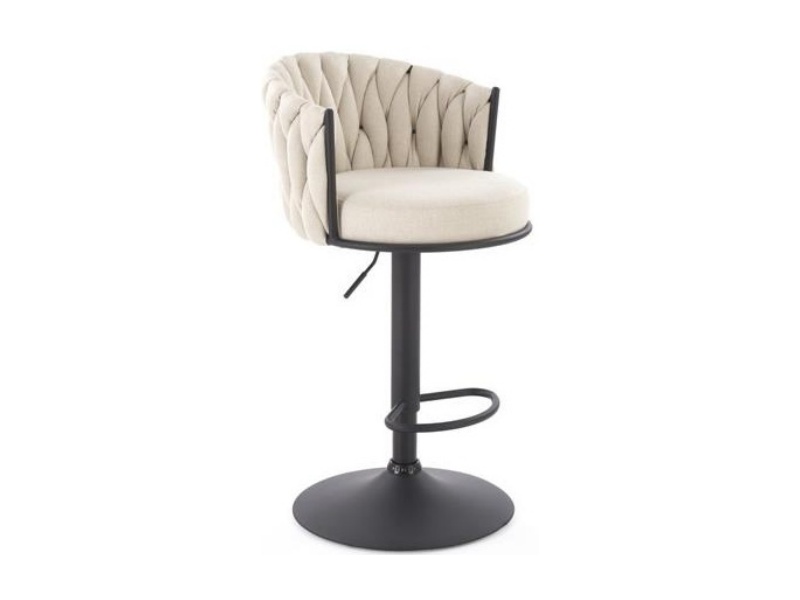 Scaun tapitat pentru bar H125 reglabil pe inaltime, elegant, material textil beige 54x56xH90-105cm, picior negru