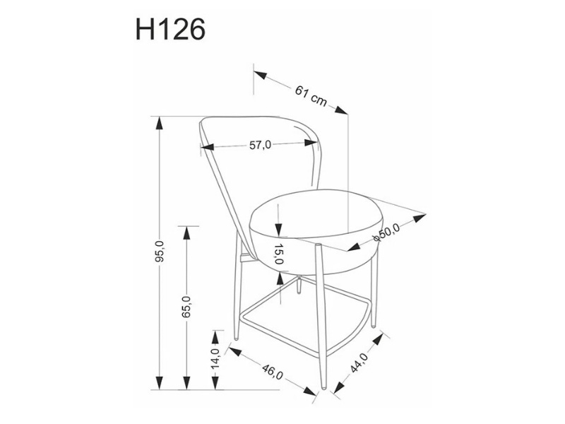 Scaun tapitat pentru bar H126 material plusat grey 50x61xH95cm, picioare negre