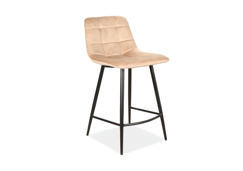 Scaun tapitat pentru bar MILA H-2 VELVET catifea beige 43x40xH87cm, picioare negre