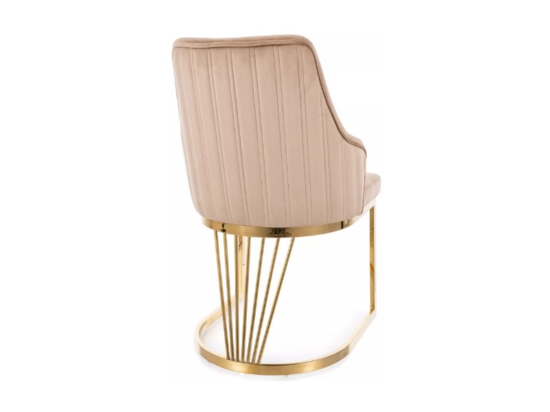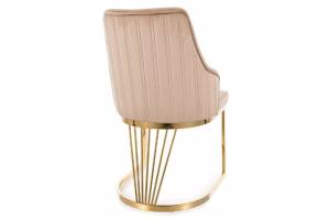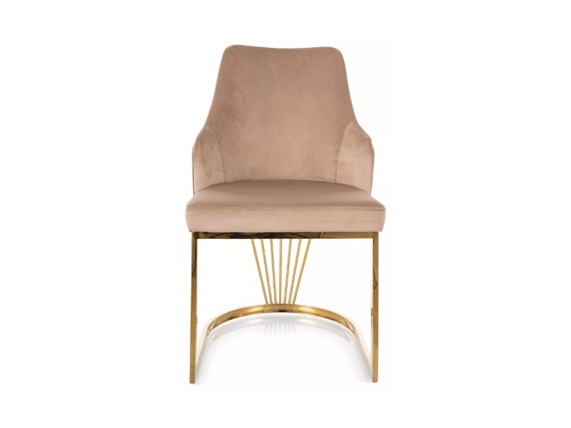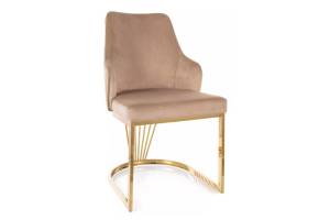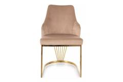 Scaun tapitat ALURE VELVET design modern luxury, catifea beige 52x64xH89cm, picioare aurii