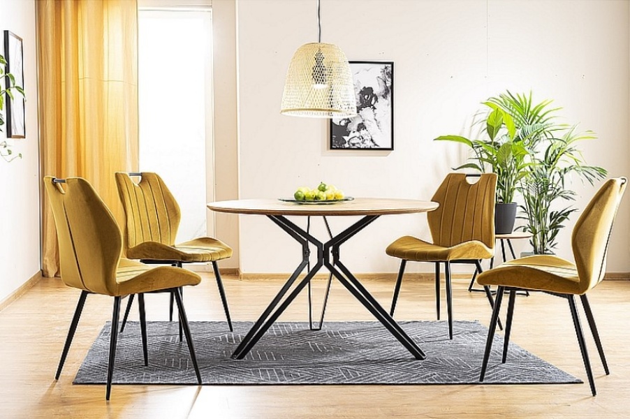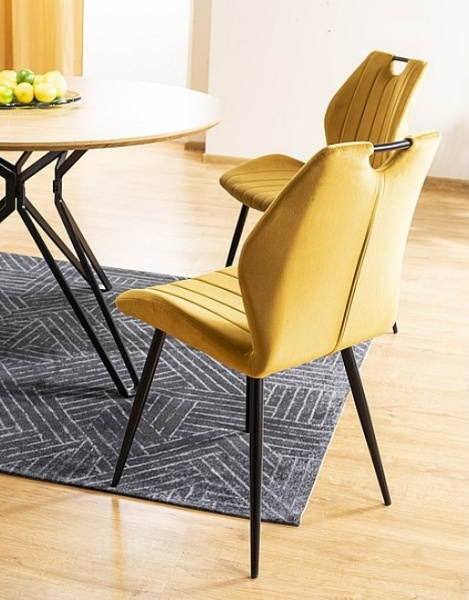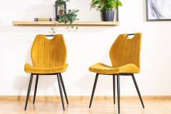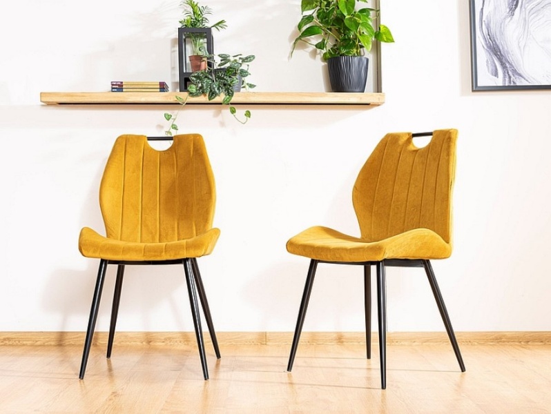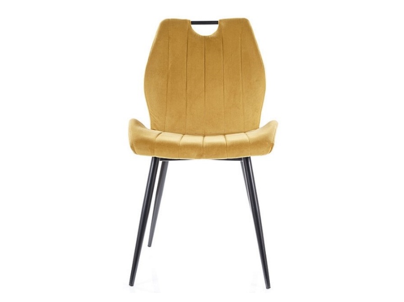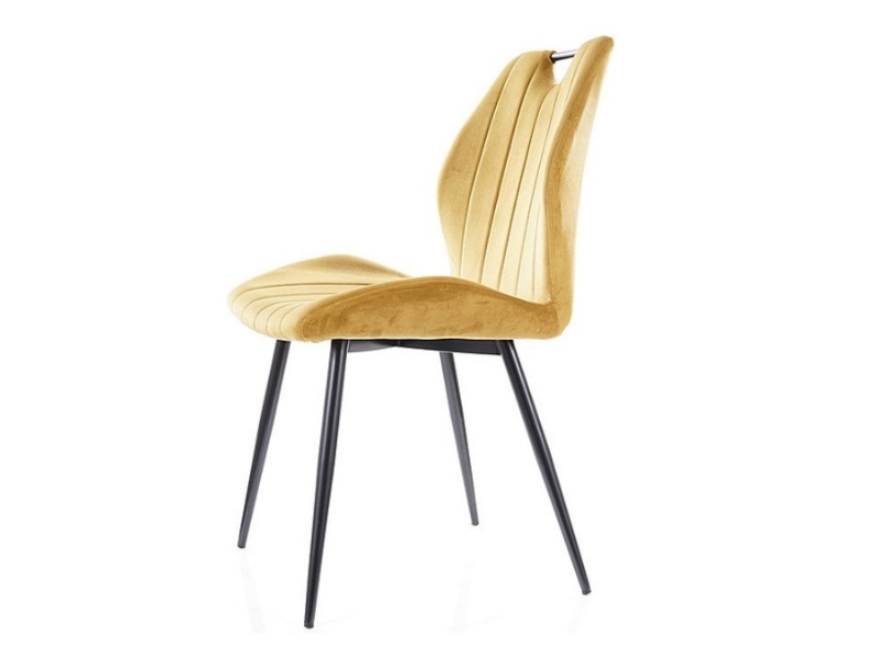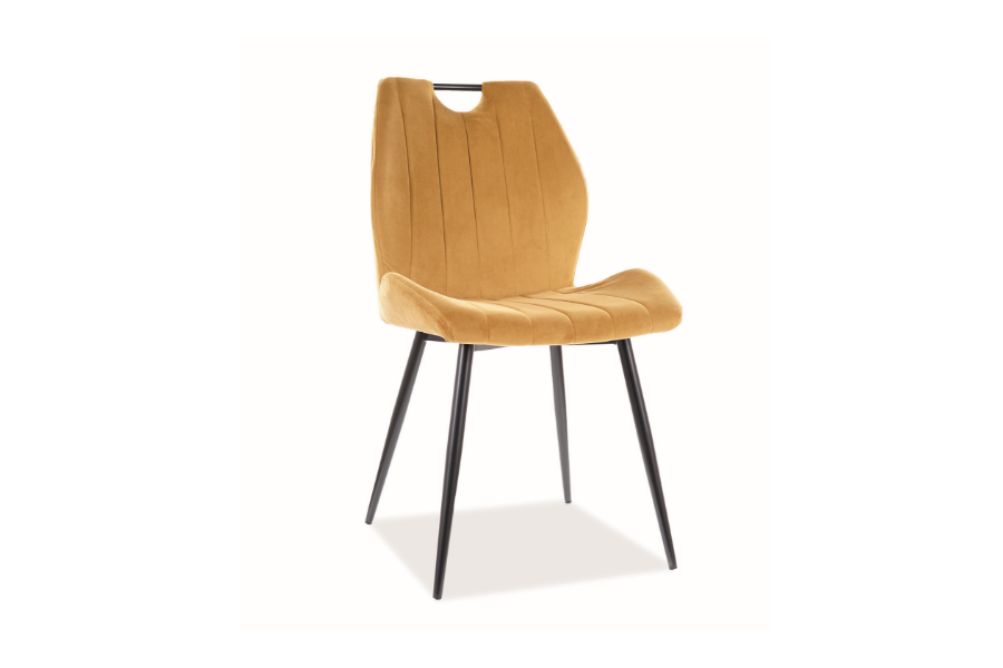 Scaun ARCO VELVET din catifea mustar Bluvel 68, cu picioare metalice negre. Design modern si vibrant, perfect pentru interioare elegante si confortabile. Adauga culoare si stil spatiului tau!"