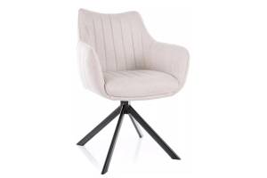 Scaun tapitat AZALIA BREGO rotativ, material textil cream 61x58xH86cm, picioare negre